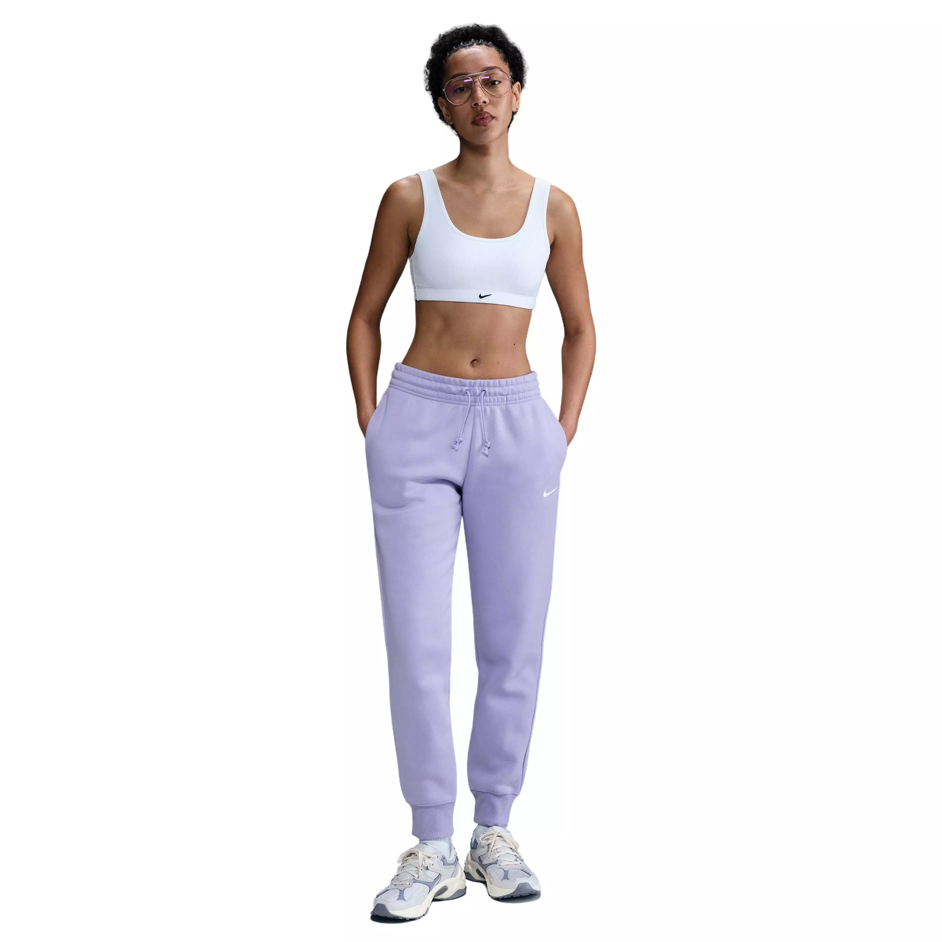 Rise up and transform your wardrobe with strong cozy vibes. Made with midweight brushed fleece that feels extra soft on the inside and smooth on the outside, these purple Nike Women's Sportswear Phoenix Fleece Mid-Rise Standard Sweatpants help you stay cozy while offering a structured shape. A tapered fit finishes with a cinch at the ankles that helps you show off your favorite kicks.Features