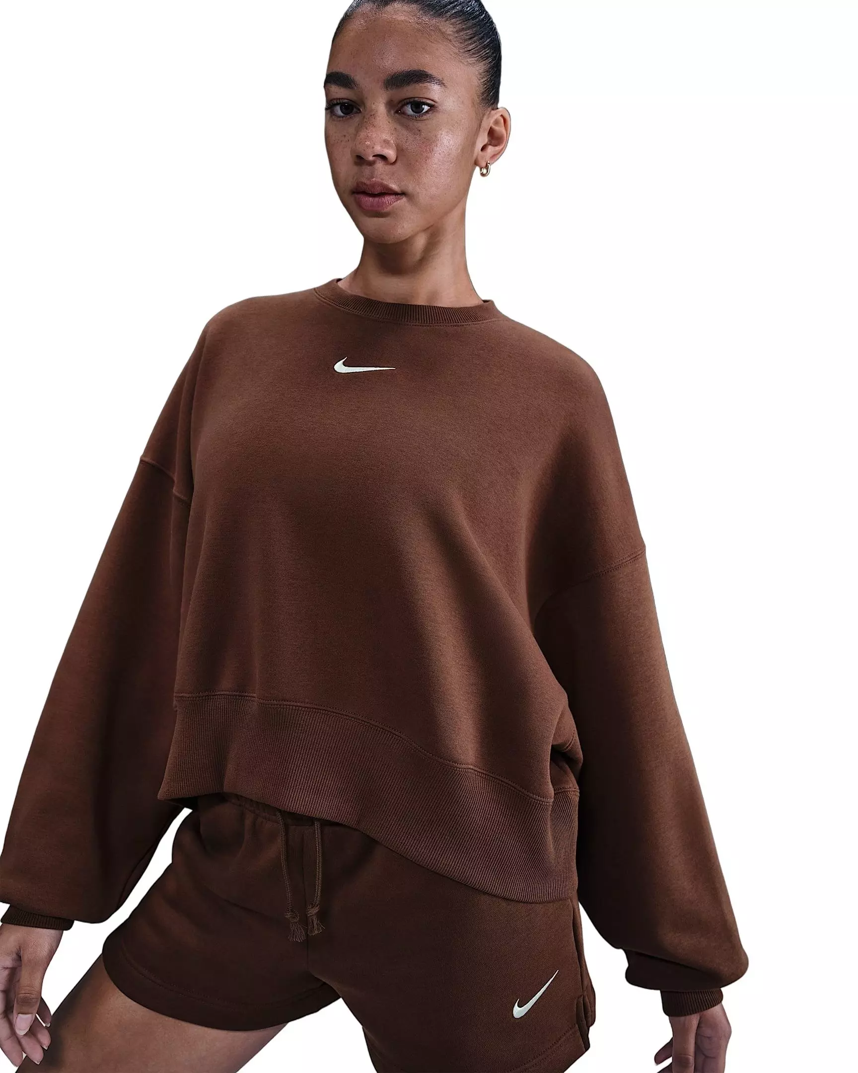 Nike Women's Sportswear Phoenix Fleece Over-Oversized Crew-Neck Sweatshirt -Brown