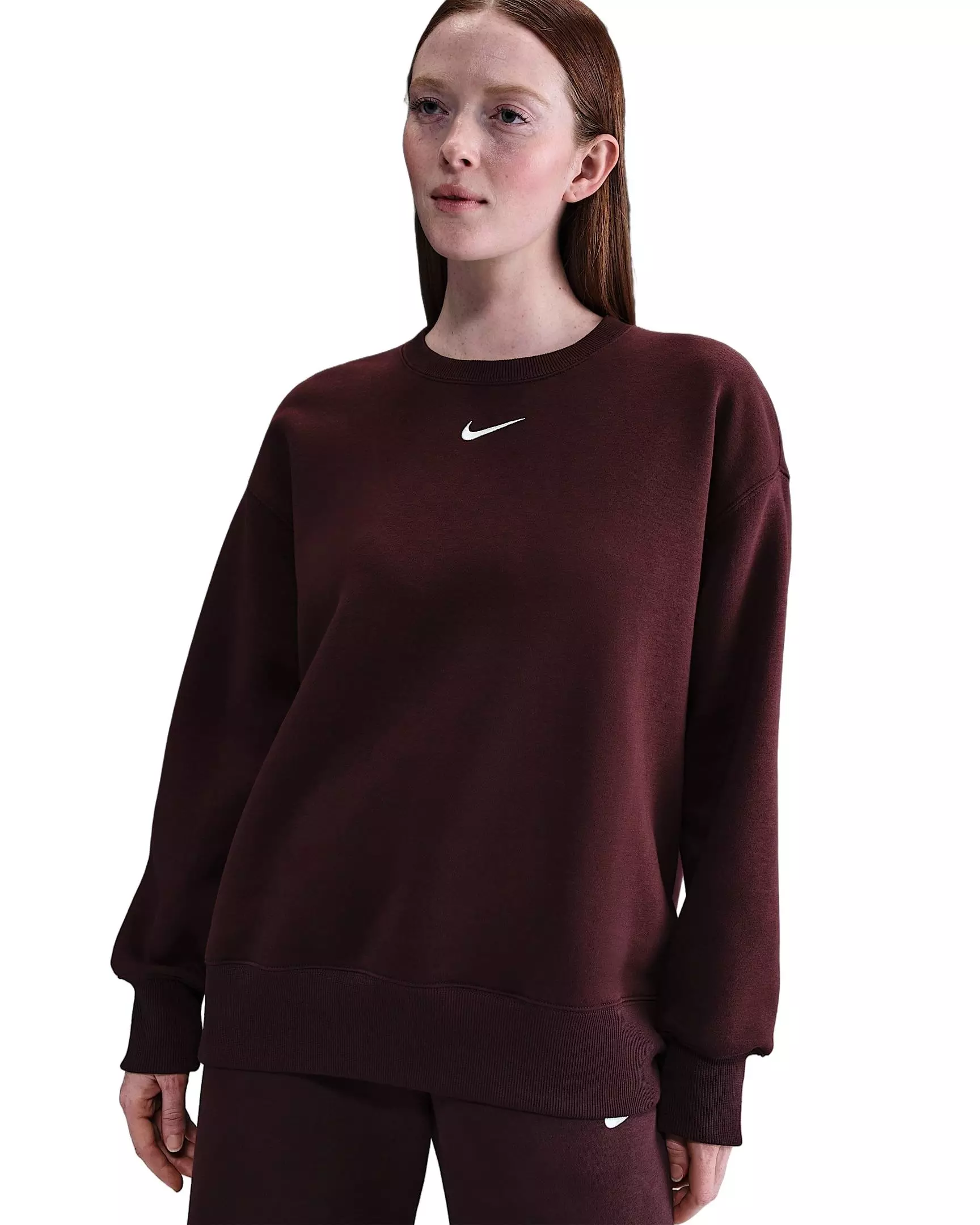 Nike Women's Sportswear Phoenix Fleece Oversized Long-Sleeve Crew-Neck Sweatshirt -Burgundy