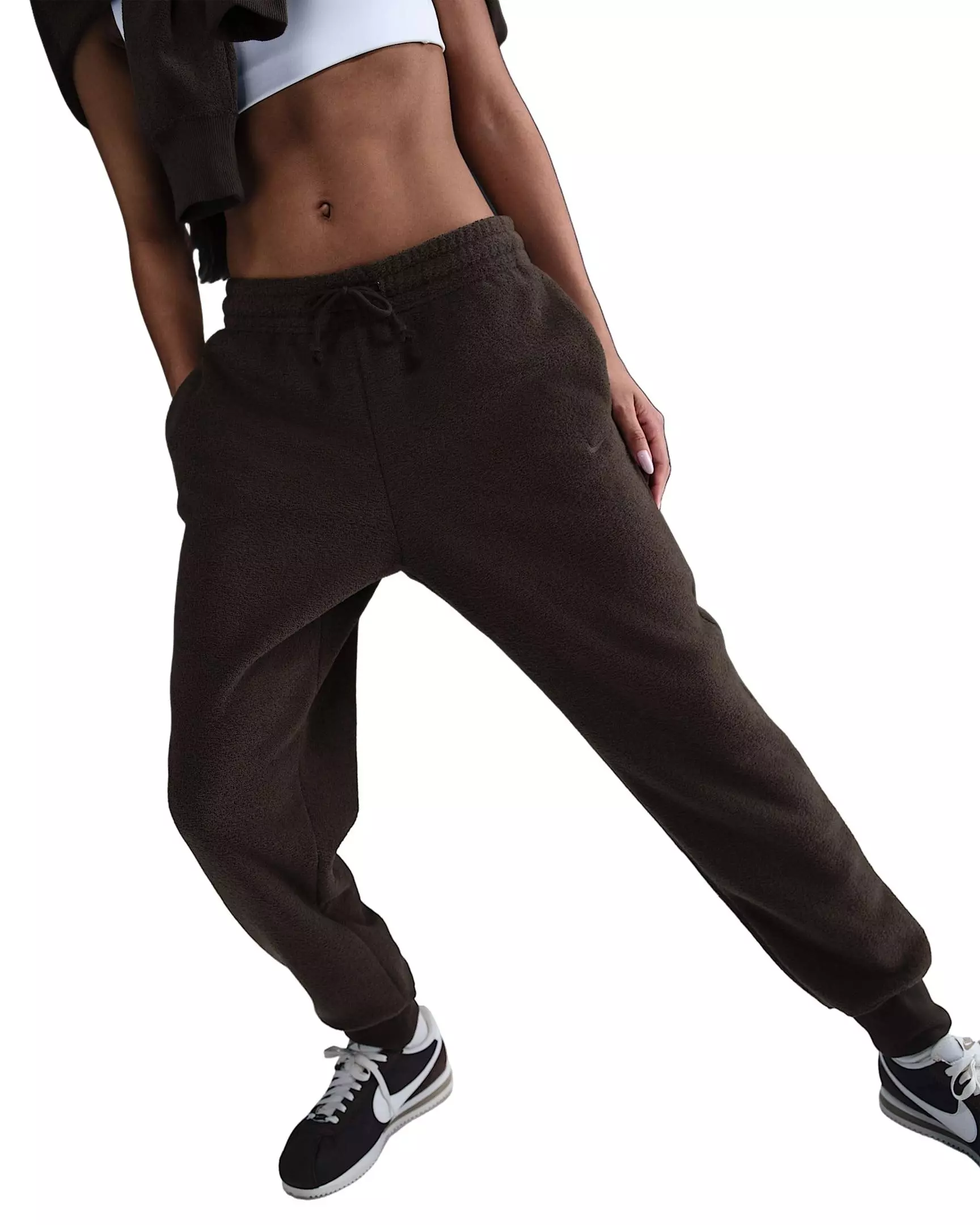 • Nike Women's Sportswear Phoenix Plush Mid-Rise Cozy Fleece Pants - Brown - BROWN