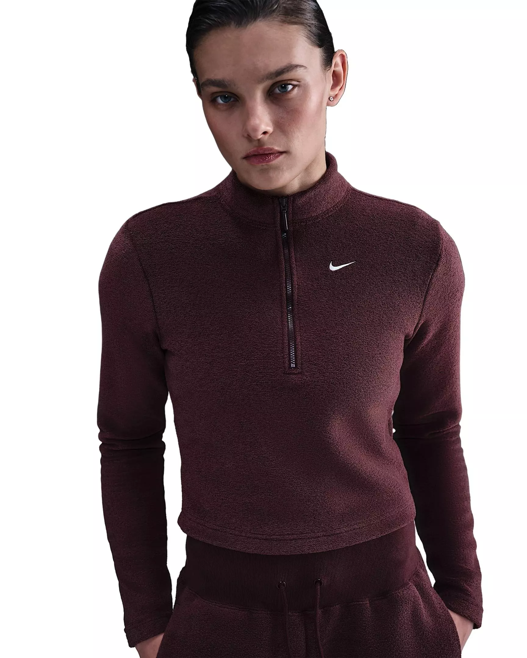 Nike Women's Sportswear Phoenix Plush Slim Long-Sleeve Cozy Fleece 1/2-Zip Top -Burgundy