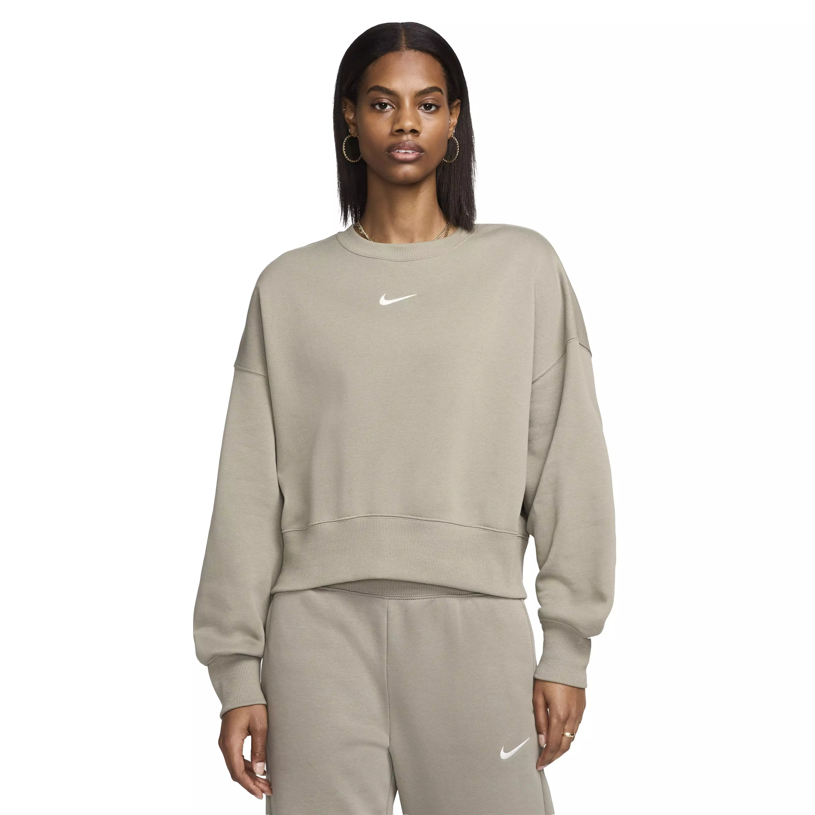 The Nike Women's Sportswear Phoenix Fleece Over-Oversized Crewneck Sweatshirt brings a luxe take to downtime. With our roomiest fit, exaggerated details like an oversized pocket and taller ribbing ensure it feels anything but basic.