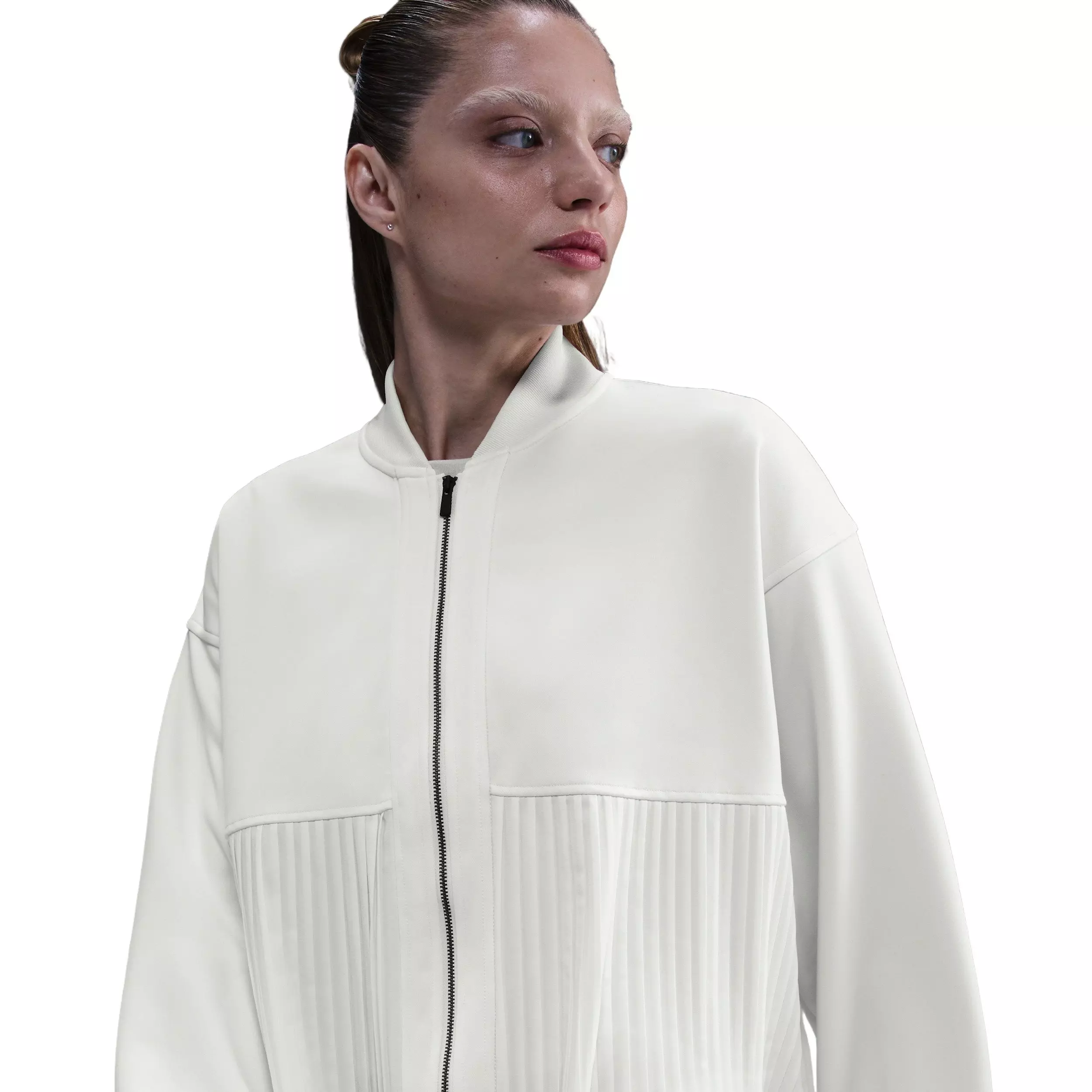 Characterized by its drape and flow, this mid-weight Nike Women's Sportswear Pleated Jacket - White has an oversized fit and pleats to give this sporty-inspired style a fresh feel.
