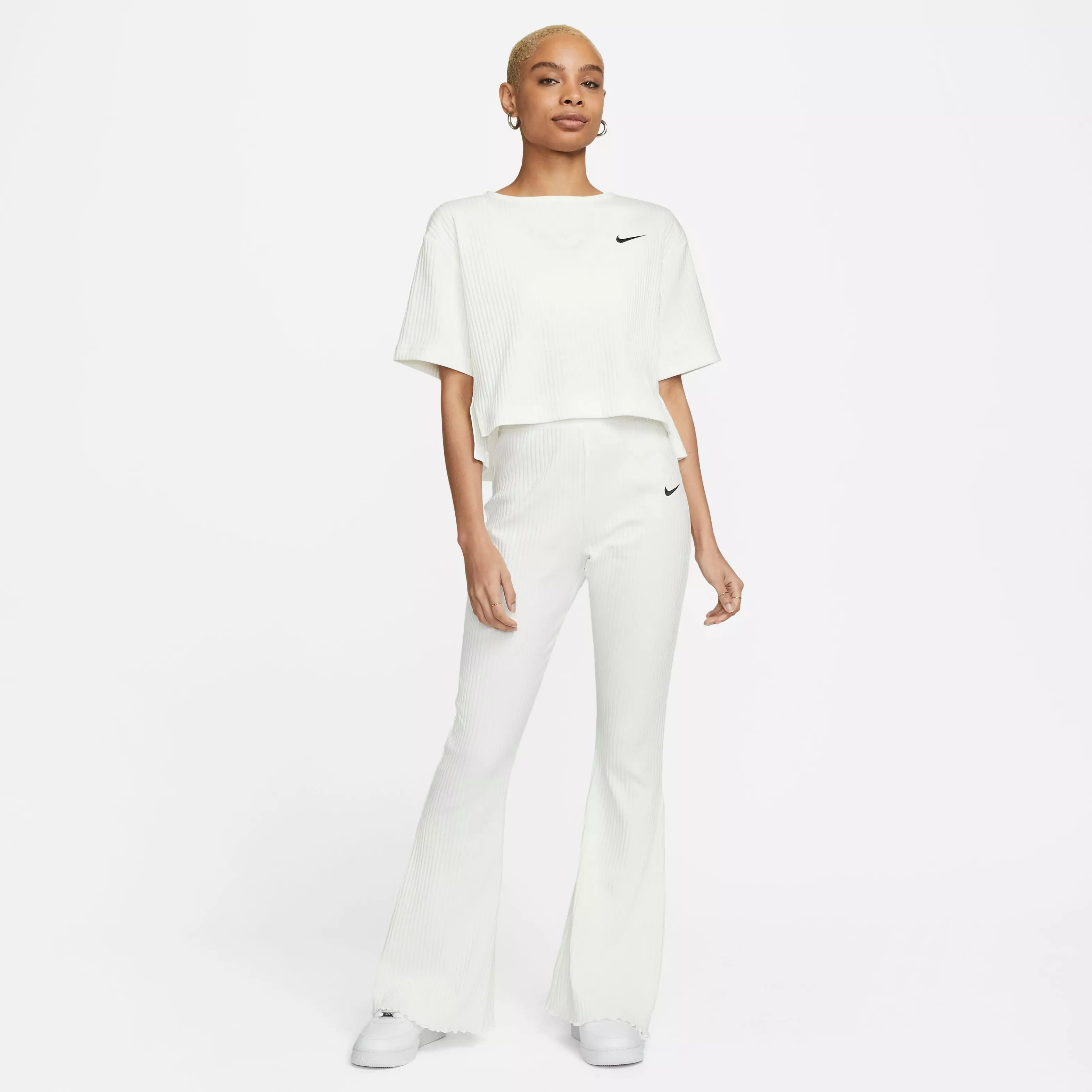 Nike Women's Sportswear Ribbed Jersey Short-Sleeve Top-Ivory