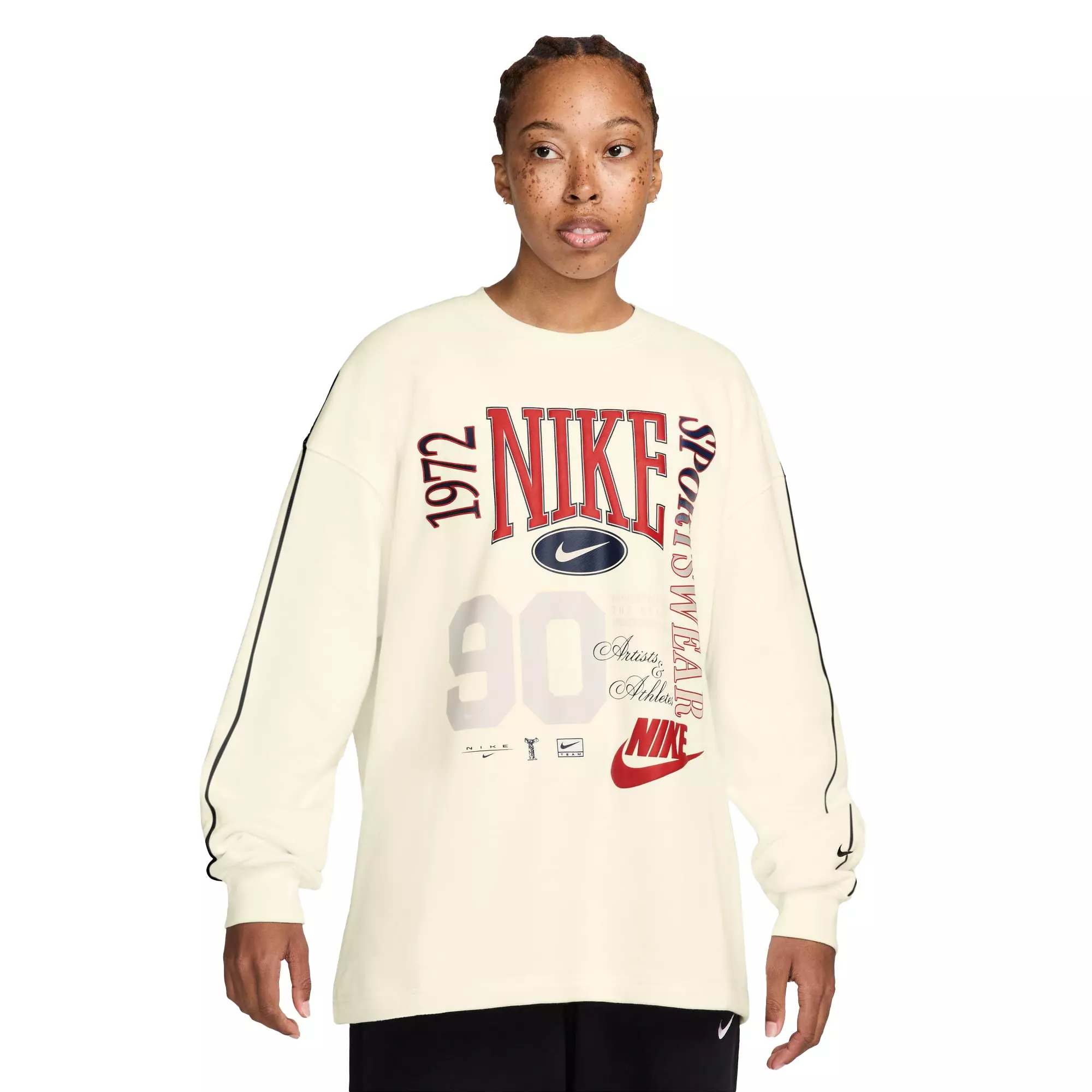 Experience casual style with the Nike Women's Sportswear Street Fleece Crewneck Sweatshirt. Its roomiest fit features dramatically dropped shoulders and an oversized silhouette with an open hem that drapes naturally.