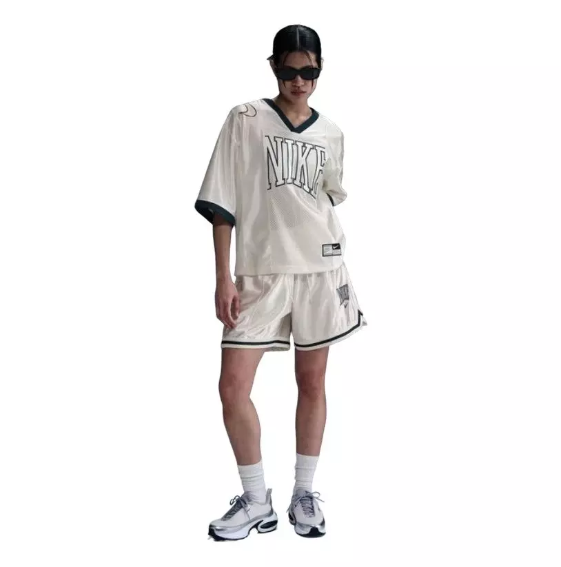 Elevate your look with the Nike Sportswear Street Short-Sleeve Graphic Jersey Top, crafted with breathable mesh teamed with smooth satin panels to add a modern edge. Dropped shoulders and a roomy body shape deliver an oversized silhouette that moves naturally.