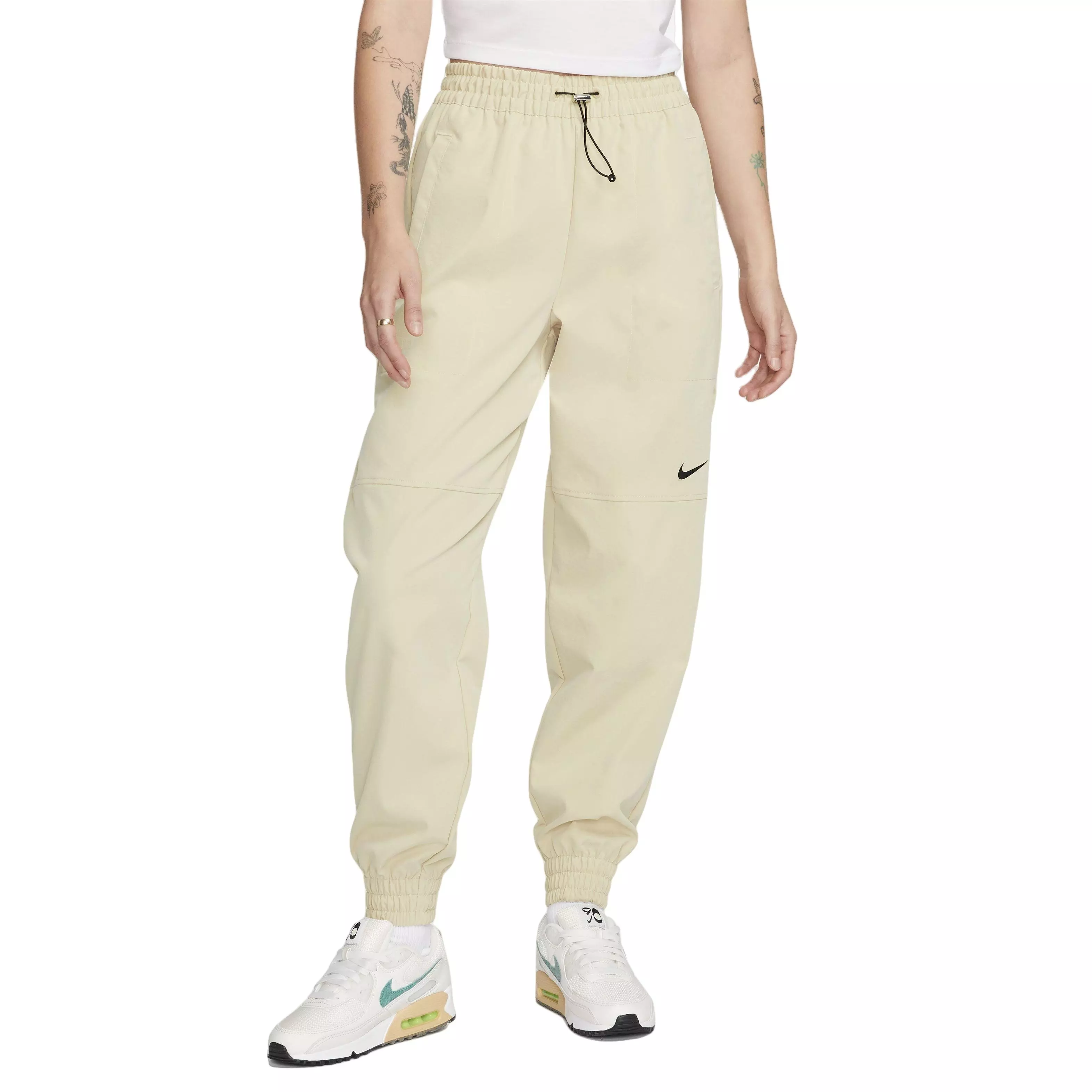 Designed to be functional and stylish, these Nike Women's Sportswear Swoosh Woven Pants keep you covered in unexpected weather without sacrificing style. Made with a lightweight woven fabric and a water-repellent finish, they help you stay dry in light rain. Plus, a relaxed fit lets you move comfortably through your day.