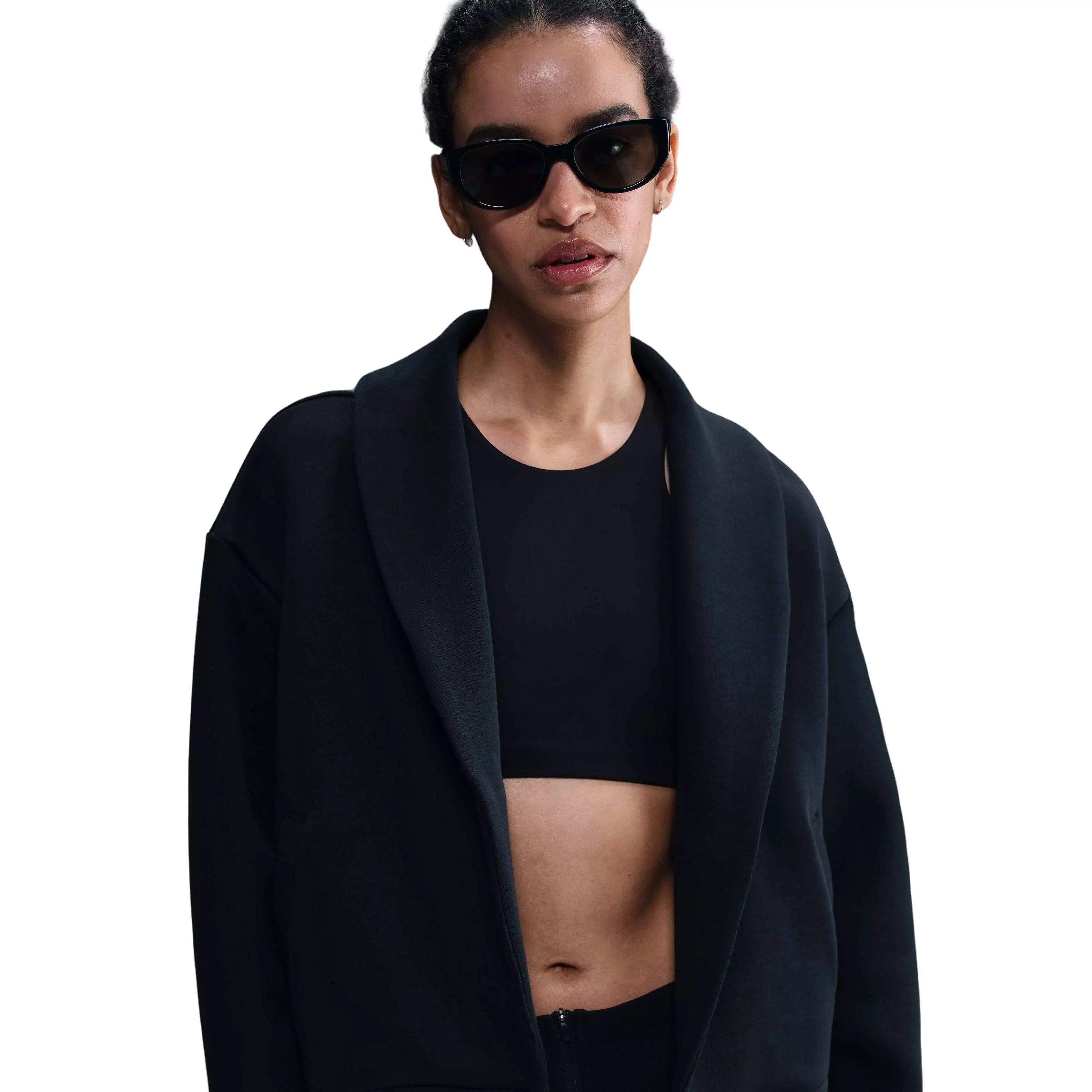 Tailored details, oversized comfort. This spacious Nike Women's Sportswear Tech Fleece Oversized Blazer-Black is made from premium, smooth-on-both-sides fleece for soft, structured warmth.Features