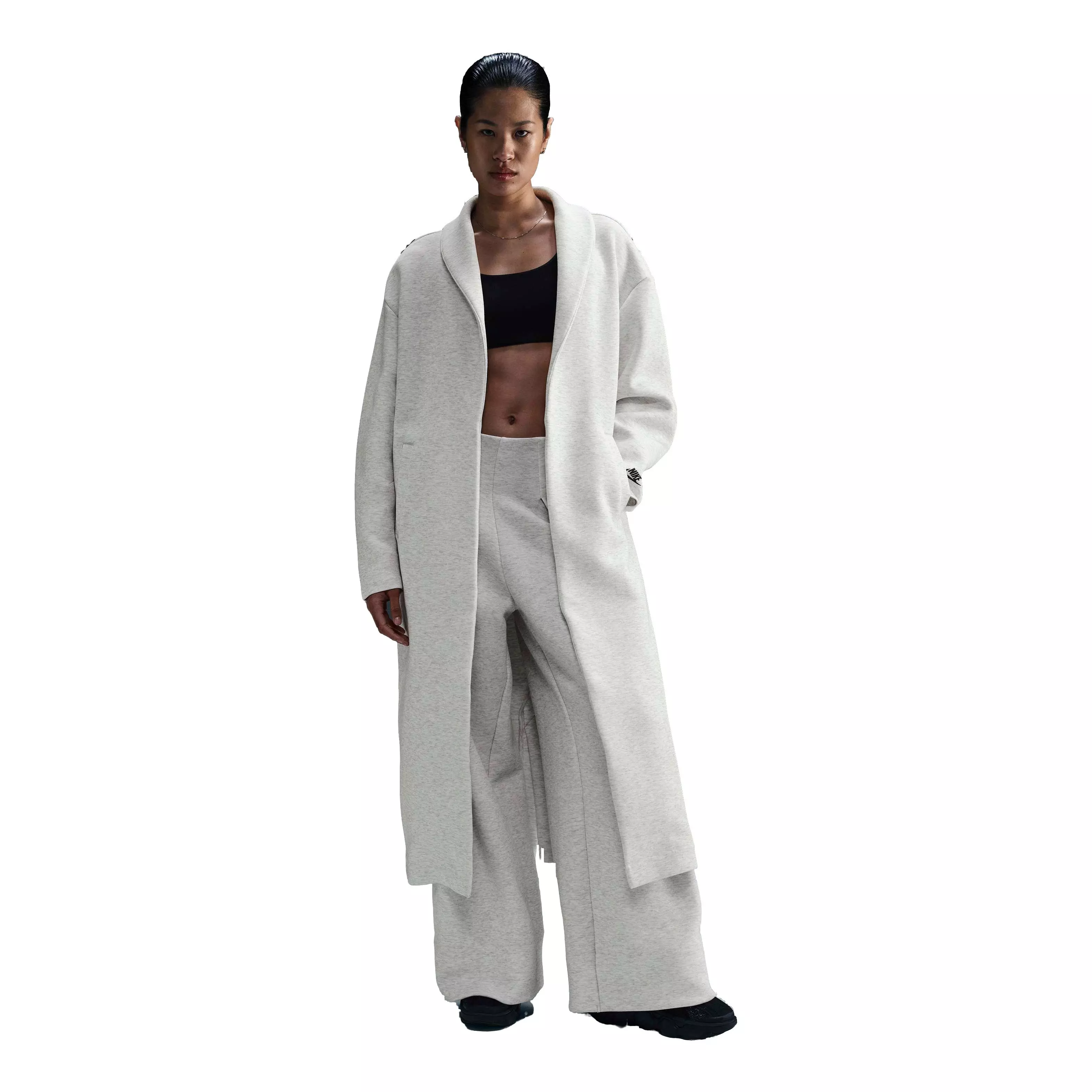Layer up with low-profile warmth in this lt grey Nike Women's Sportswear Tech Fleece Oversized Duster Jacket. Our premium, smooth-on-both-sides fleece feels warmer and softer than ever, while keeping the same lightweight build you love. Dropped shoulders and extra room through the sleeves gives you a relaxed vibe and make it perfect for layering over any outfit.Features