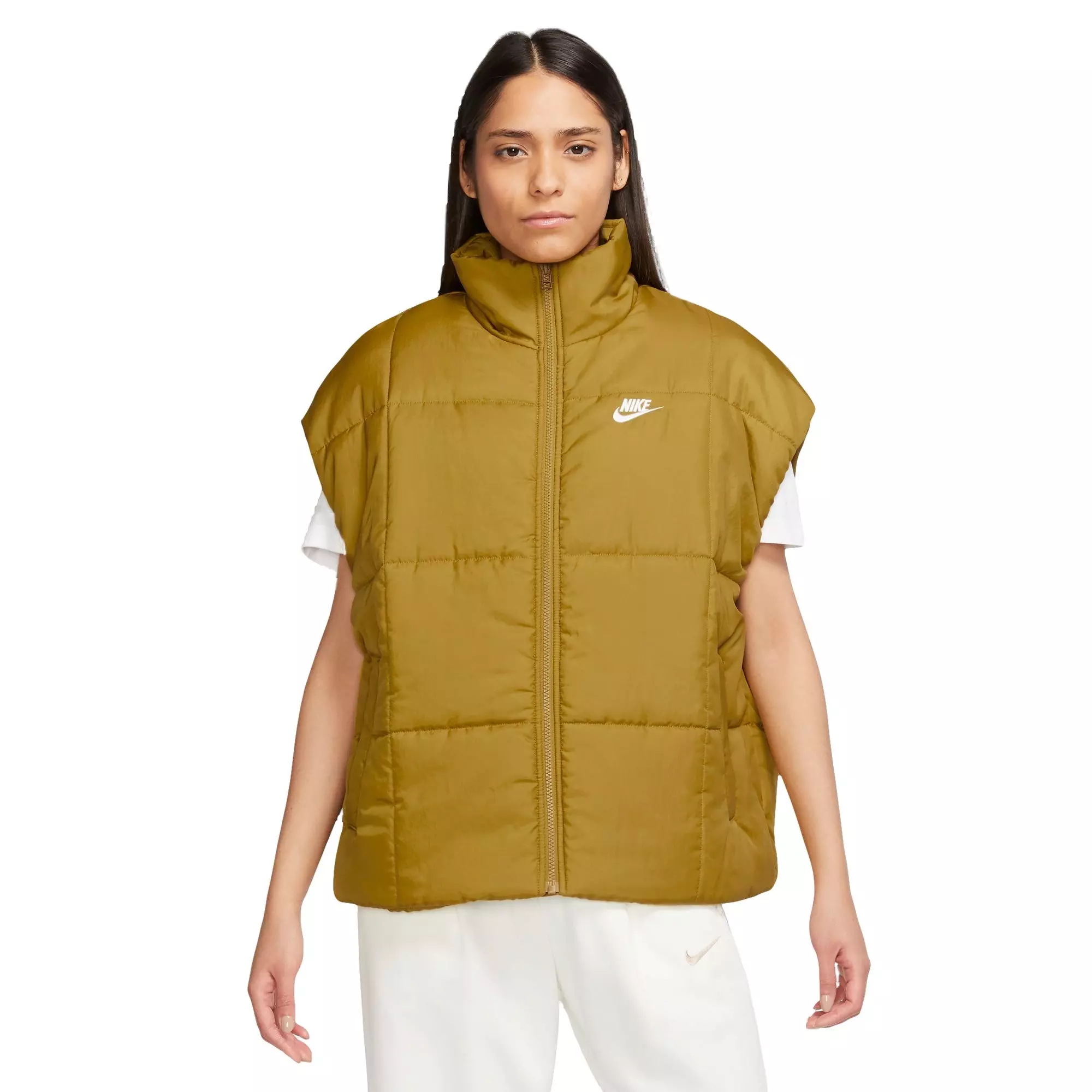 Warm enough to keep you comfortable but light enough to keep you on the go, this spacious Nike Women's Sportswear Therma-FIT Classic Vest is the perfect layering piece. Zip it all the way up for extra coverage from the wind as the puffy fabric helps manage your body's natural heat to keep you warm in cooler temps.