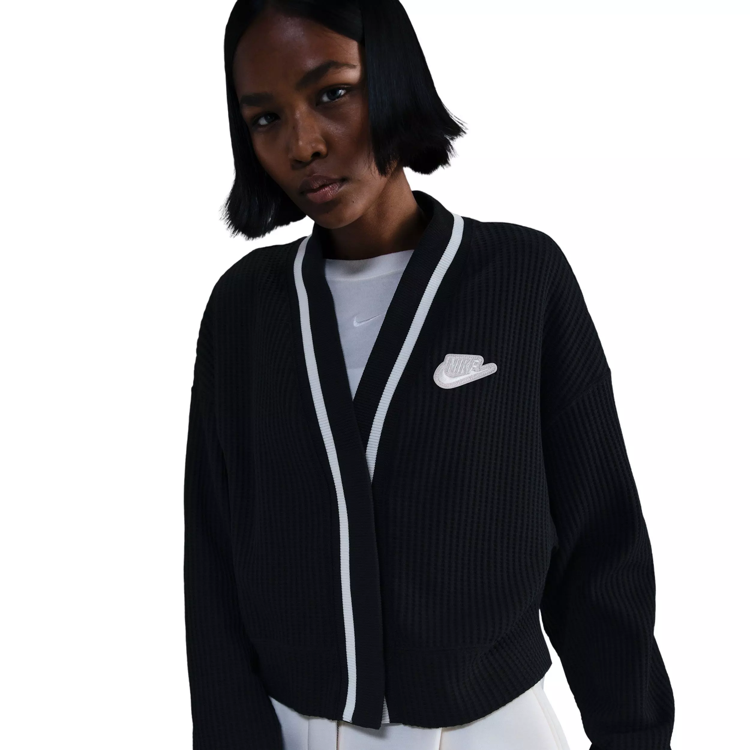 Show off a different style in this black Nike Women's Sportswear Vest. Stripped ribbing nods to heritage sport and waffle knit fabric adds texture to this loose vest.Features