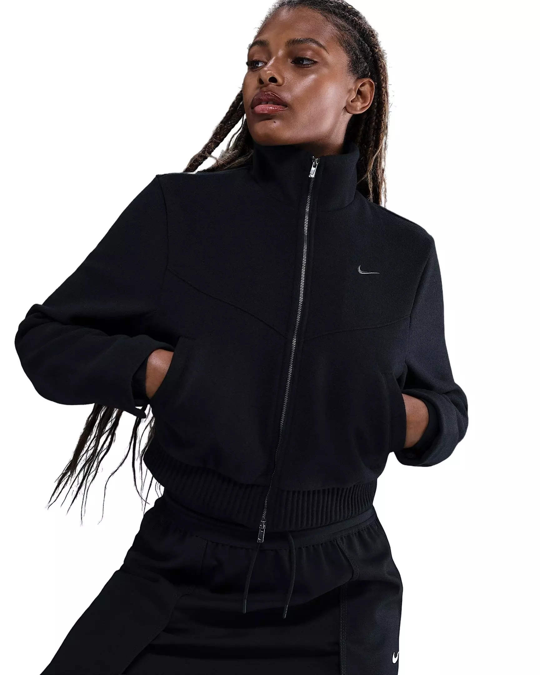 Elevating sport inspiration, this Nike Women's Sportswear Windrunner Tailored Jacket - Black is made from structured French terry and has a satin lining for a luxe feel.Features