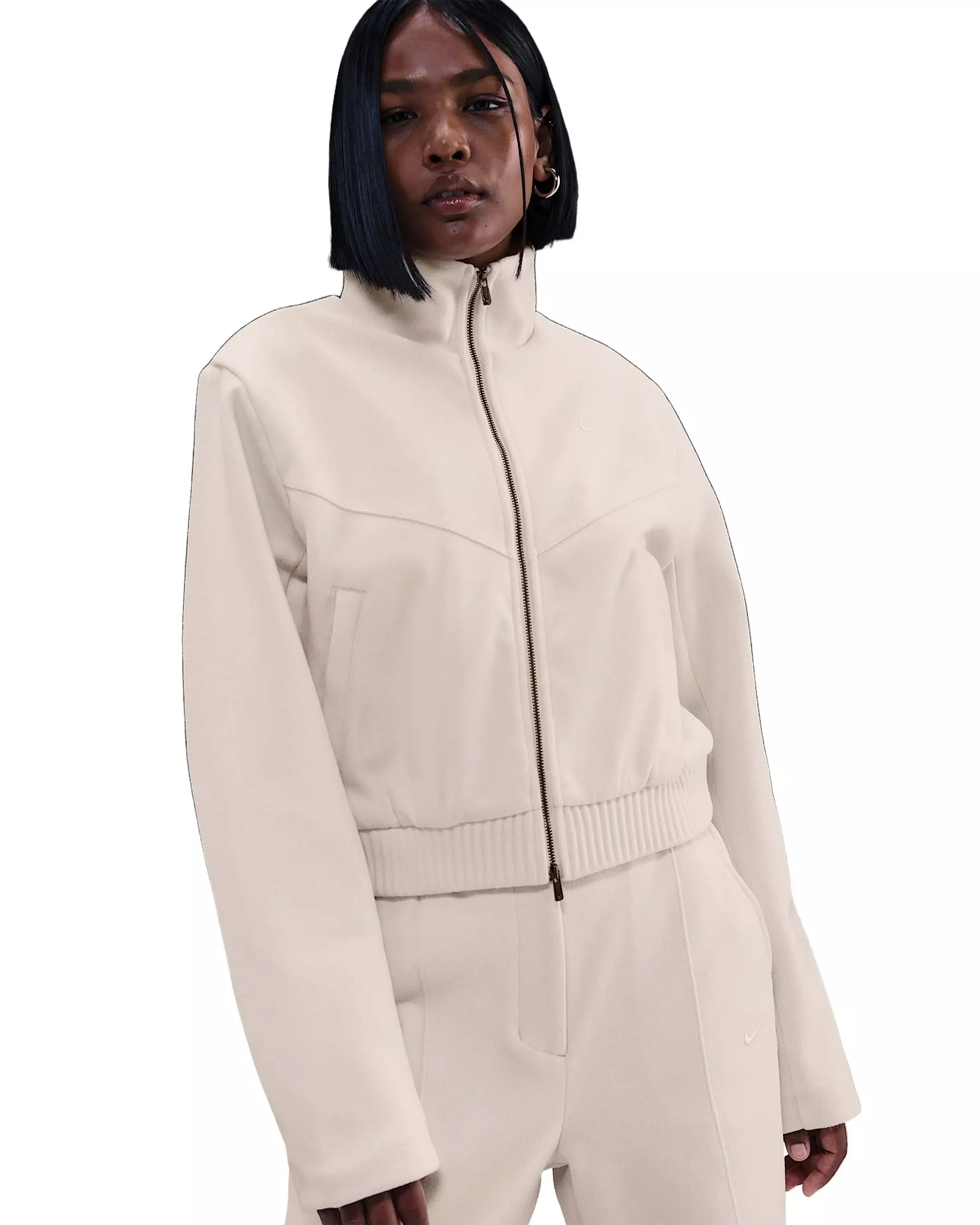 Elevating sport inspiration, this Nike Women's Sportswear Windrunner Tailored Jacket - Ivory is made from structured French terry and has a satin lining for a luxe feel.Features