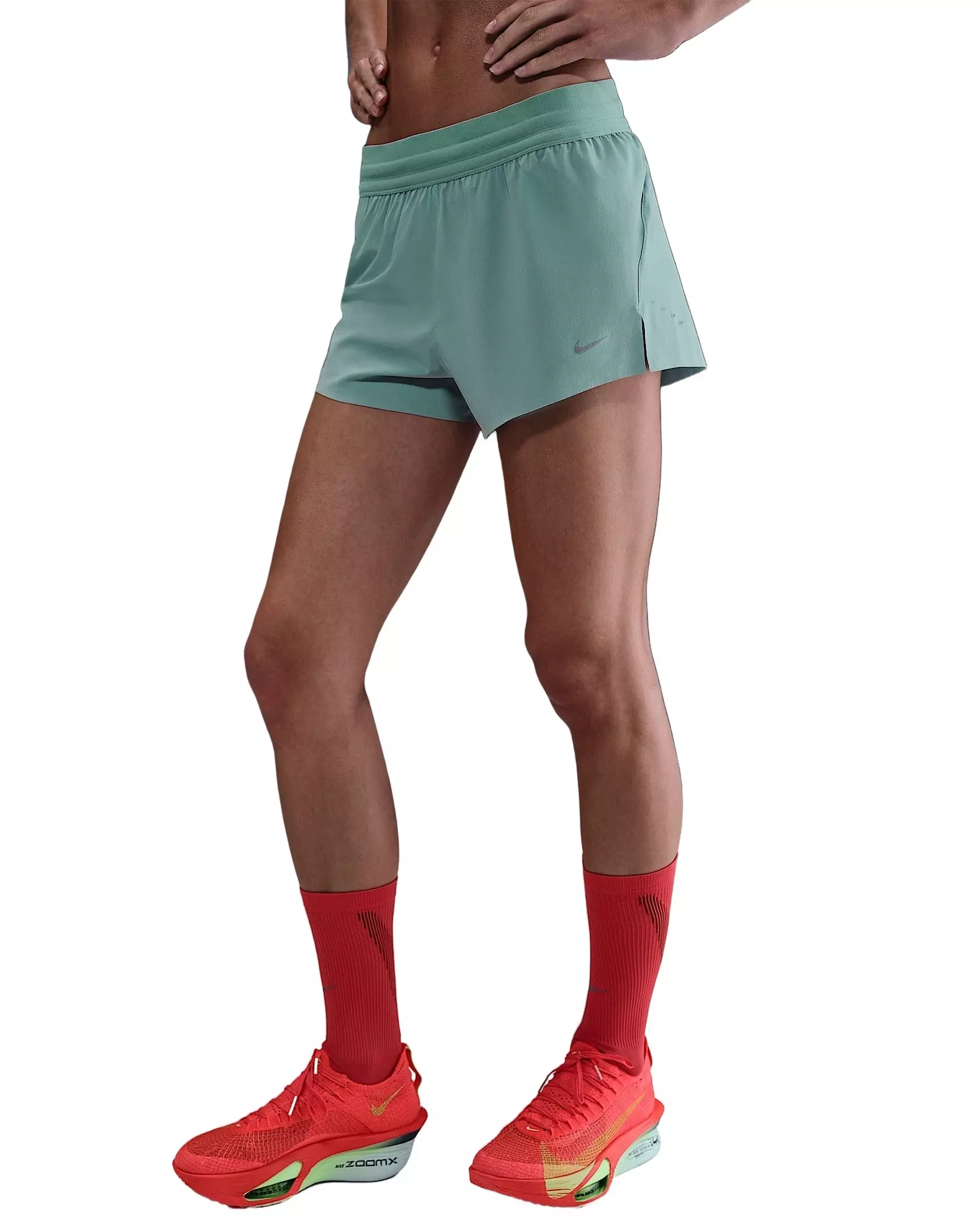 Stay focused on your run in the Nike Women’s Swift Dri-FIT Mid-Rise 2.5" Brief-Lined Running Shorts. Lightweight fabric and sweat-wicking Dri-FIT technology help keep you dry, while the smooth brief lining reduces chafing for confident miles. The mid-rise fit offers secure coverage without restricting your stride.Carry small essentials in the secure pocketing so you can keep your hands free and your pace steady. A 2.5-inch inseam delivers easy mobility, and the green color adds a fresh finish for training days or race day.