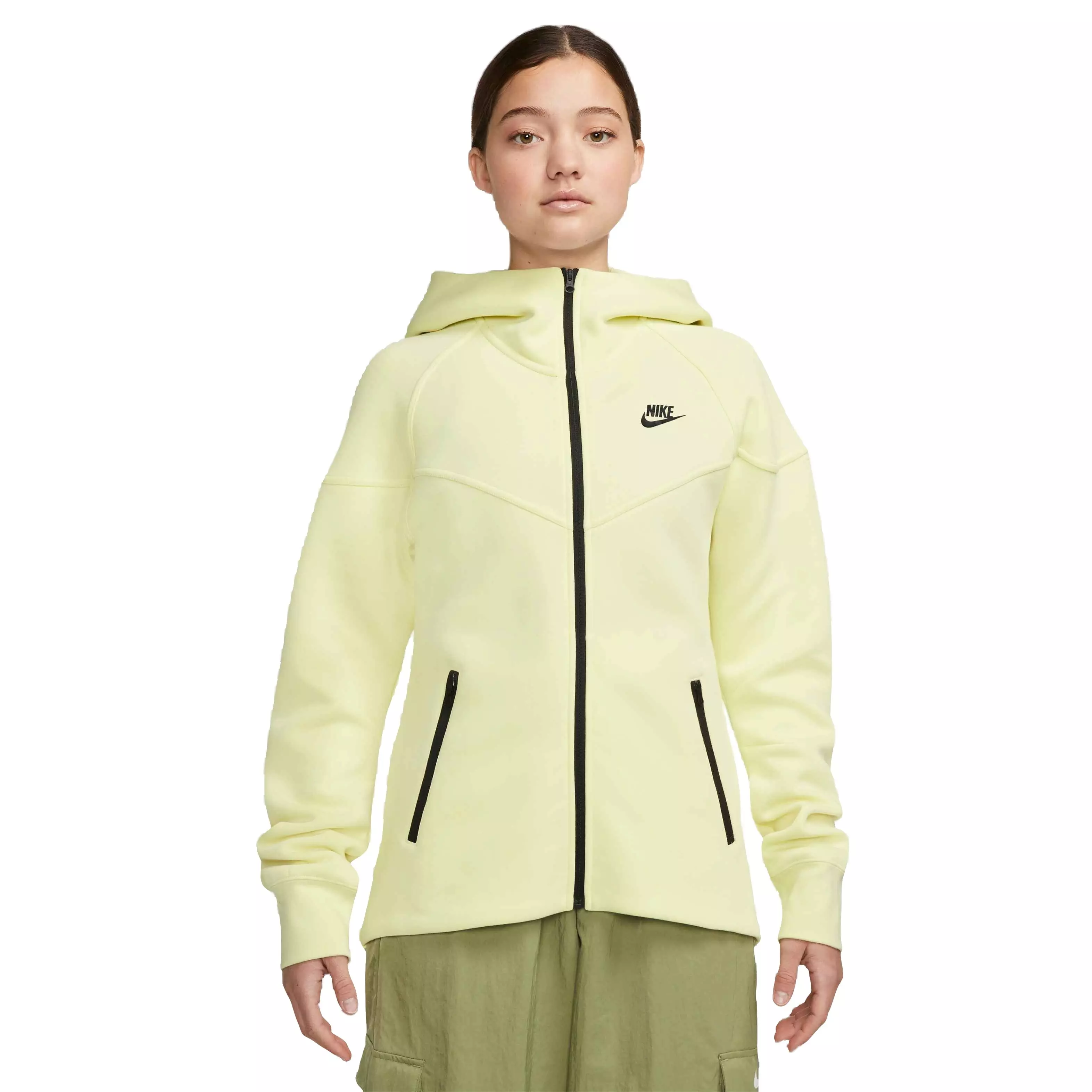 Inspired by the color palette and textures found in natural minerals, tailored lines and sleek details elevate the hoodie for the 10 year anniversary of Nike Tech Fleece. Our premium, lightweight fleece–smooth both inside and out–gives you plenty of warmth without adding bulk. Classic Nike Windrunner styling details take a look back at your favorite hoodie while making a leap forward. Updated darting helps keep things fresh. Find the future of fleece, it starts here in the Nike Women's Tech Fleece Windrunner Full-Zip Hoodie - Lumi Green​.