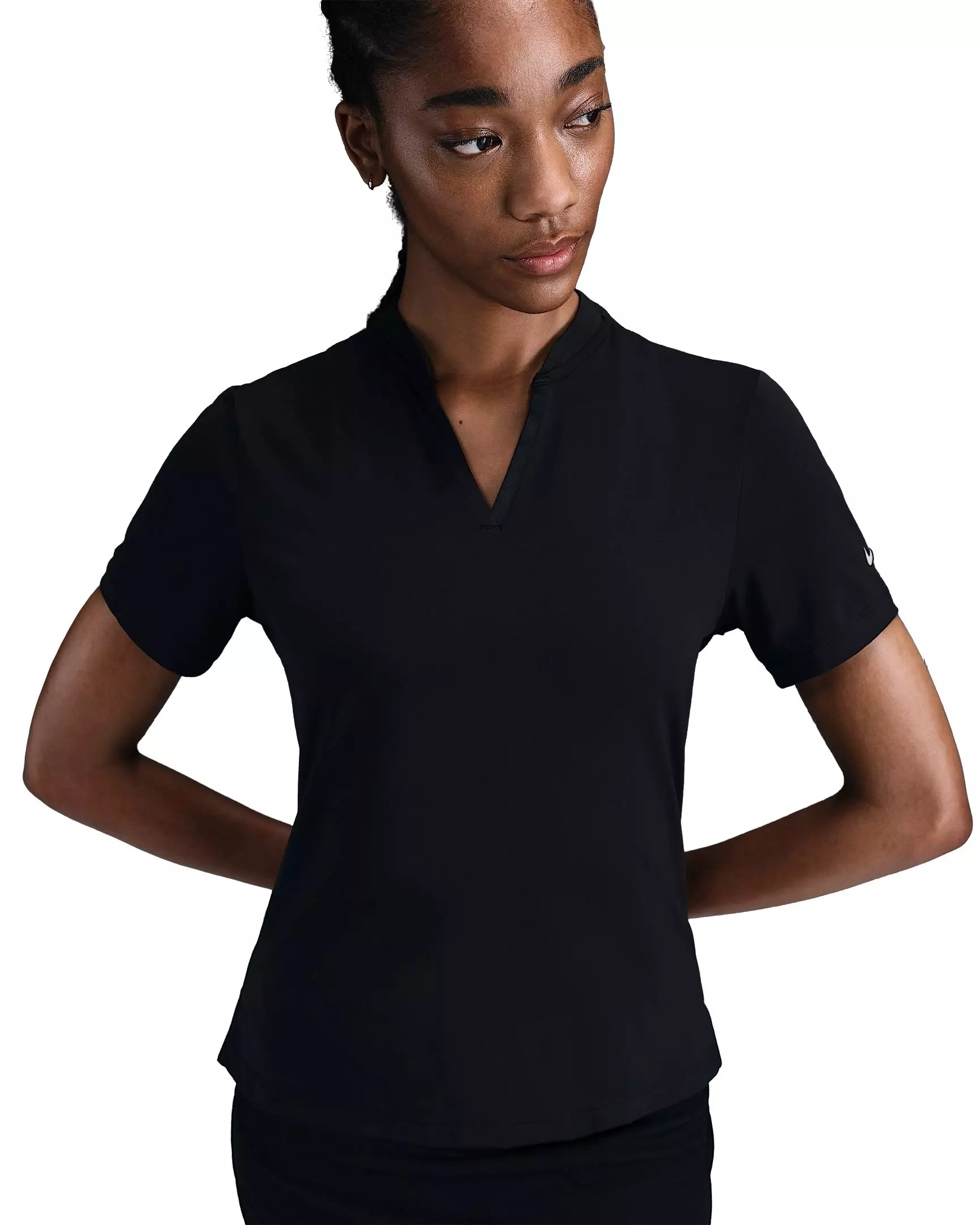 With a tailored fit and sleek collar design, this Nike Women's Tour Dri-FIT Short-Sleeve Blade Golf Polo - Black gives you a polished look. Lightweight and silky-smooth, the fabric is equipped with UV protection and dries quickly, helping you stay cool and comfortable.Features