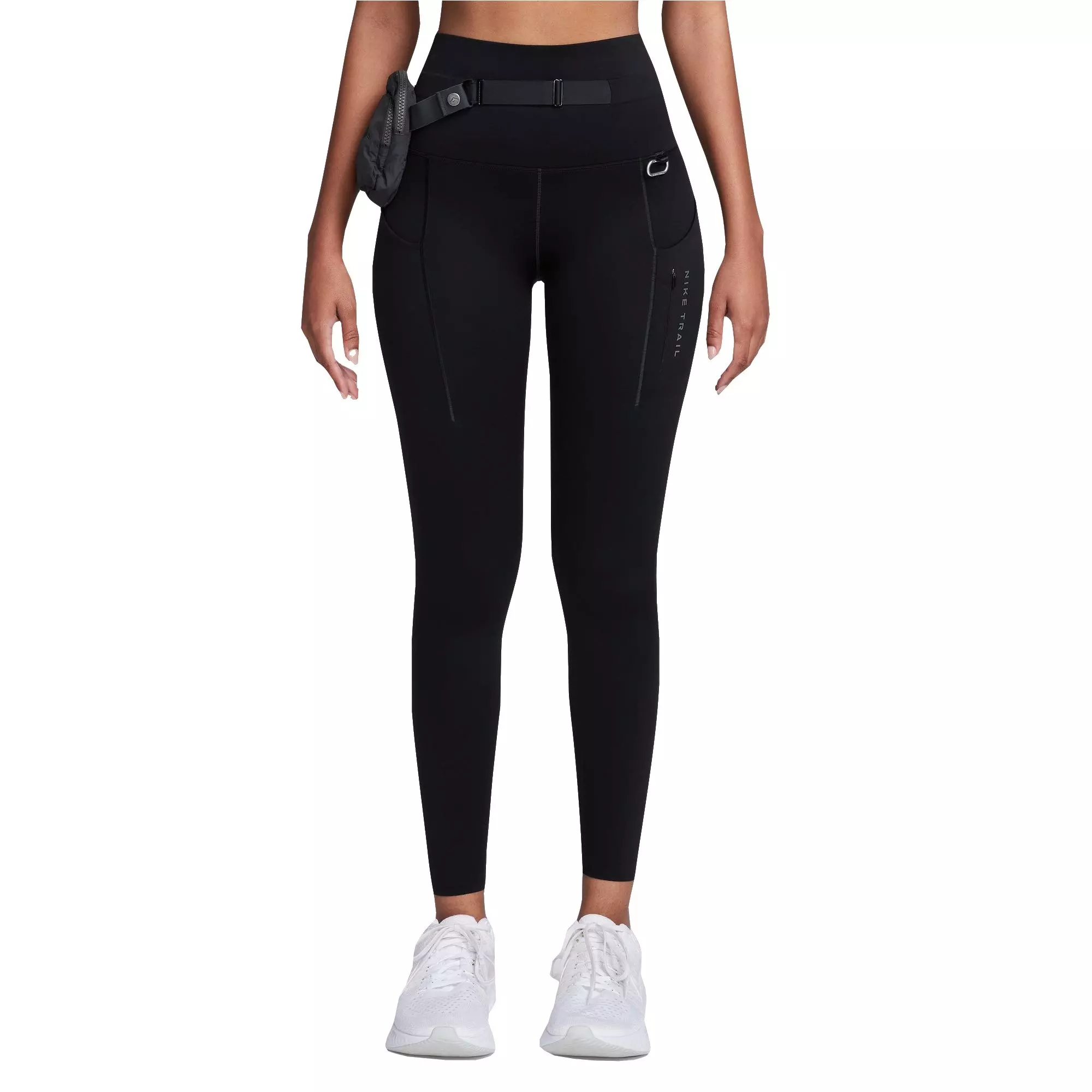 ​Whether you're out for a quick forest jog or a longer mountain run, Nike Trail has the durability and adaptability to help make connecting with your surroundings easier, even in dynamic conditions. Push yourself with the right balance of support and comfort in these Nike Women's Trail Go Firm-Support High-Waisted 7/8 Leggings with Pockets. Their sleek, midweight InfinaLock fabric feels compressive and supportive. Trail-ready features—including a detachable pack and carabiner—let you secure your essentials so your adventure has no limits.