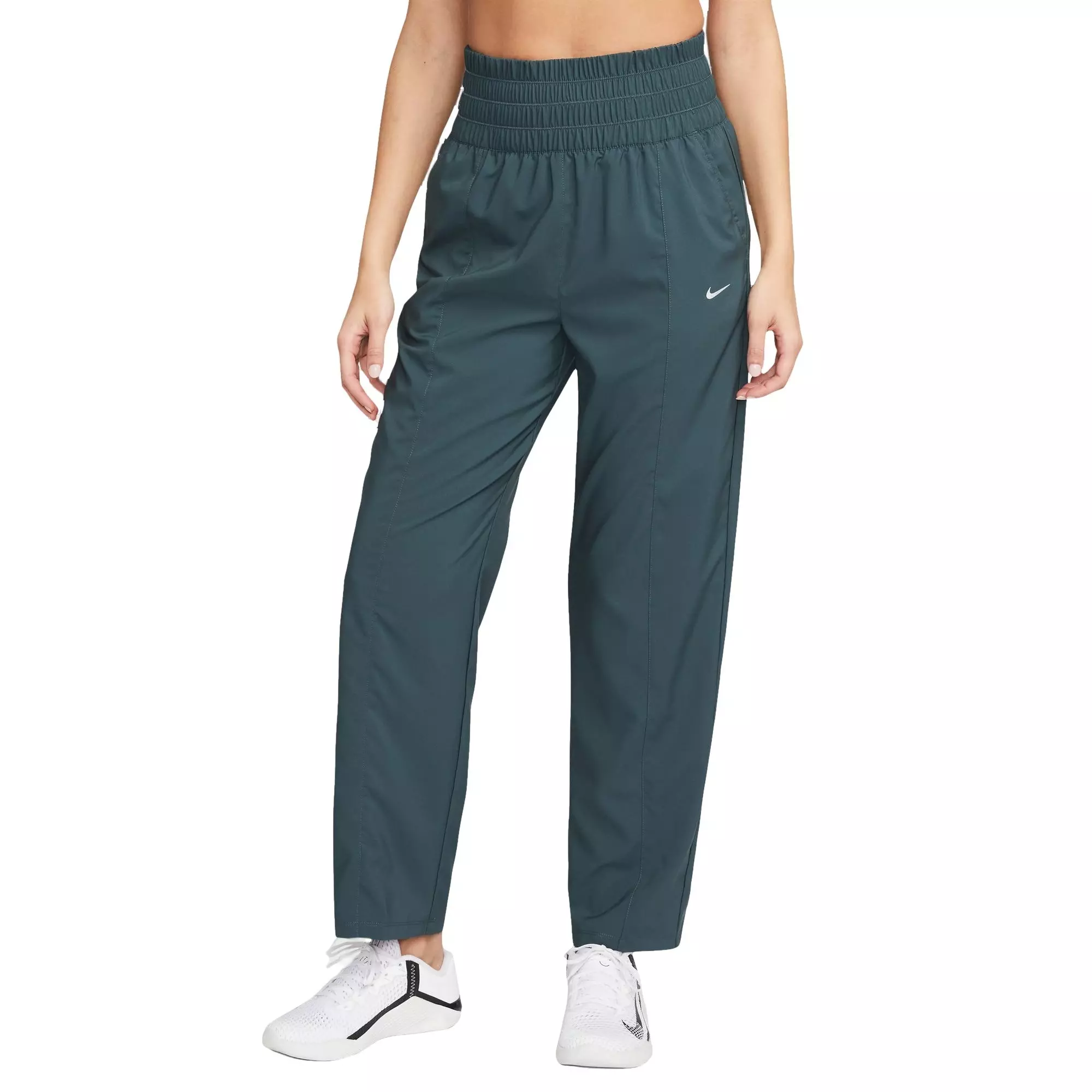 Jump into your next play, rep, or back onto the couch on rest days in these Nike Women's Ultra Highrise Pants - Deep Jungle. The soft, sweat-wicking fabric feels comfortable and easy to move in. While the elastic waistband sits securely on your waist without pinching or binding, the 2 open pockets keep your essentials close.Features