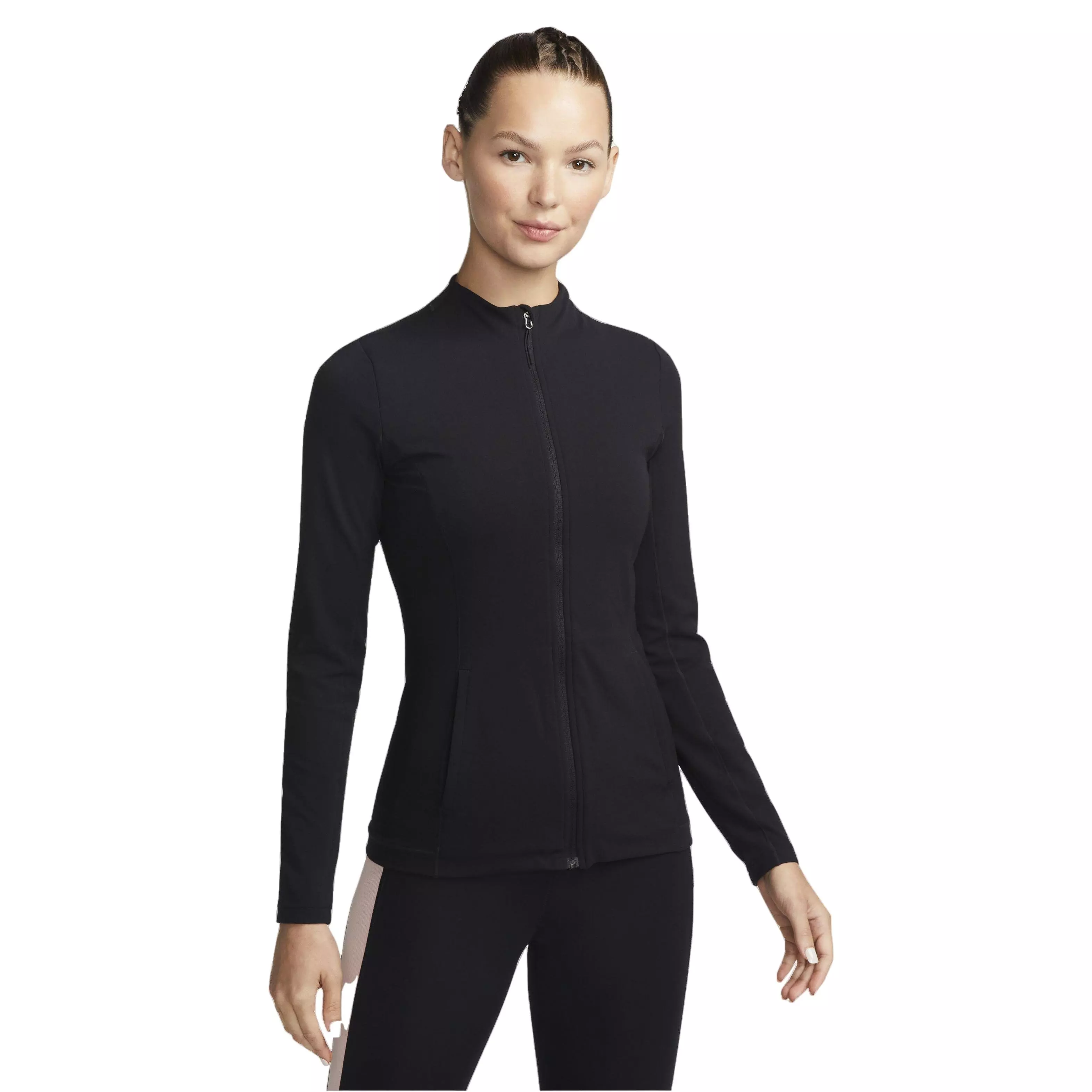 Your life is already a balancing act before you reach the mat. You need the perfect balance of support and comfort for any movement. Enter this fitted Nike Women's Yoga Dri-FIT Luxe Fitted Jacket. Layer over a snug tee or under a hoodie to stay warm and cozy. Feel a sense of calm and focus on your breathing so you can find your flow.Features