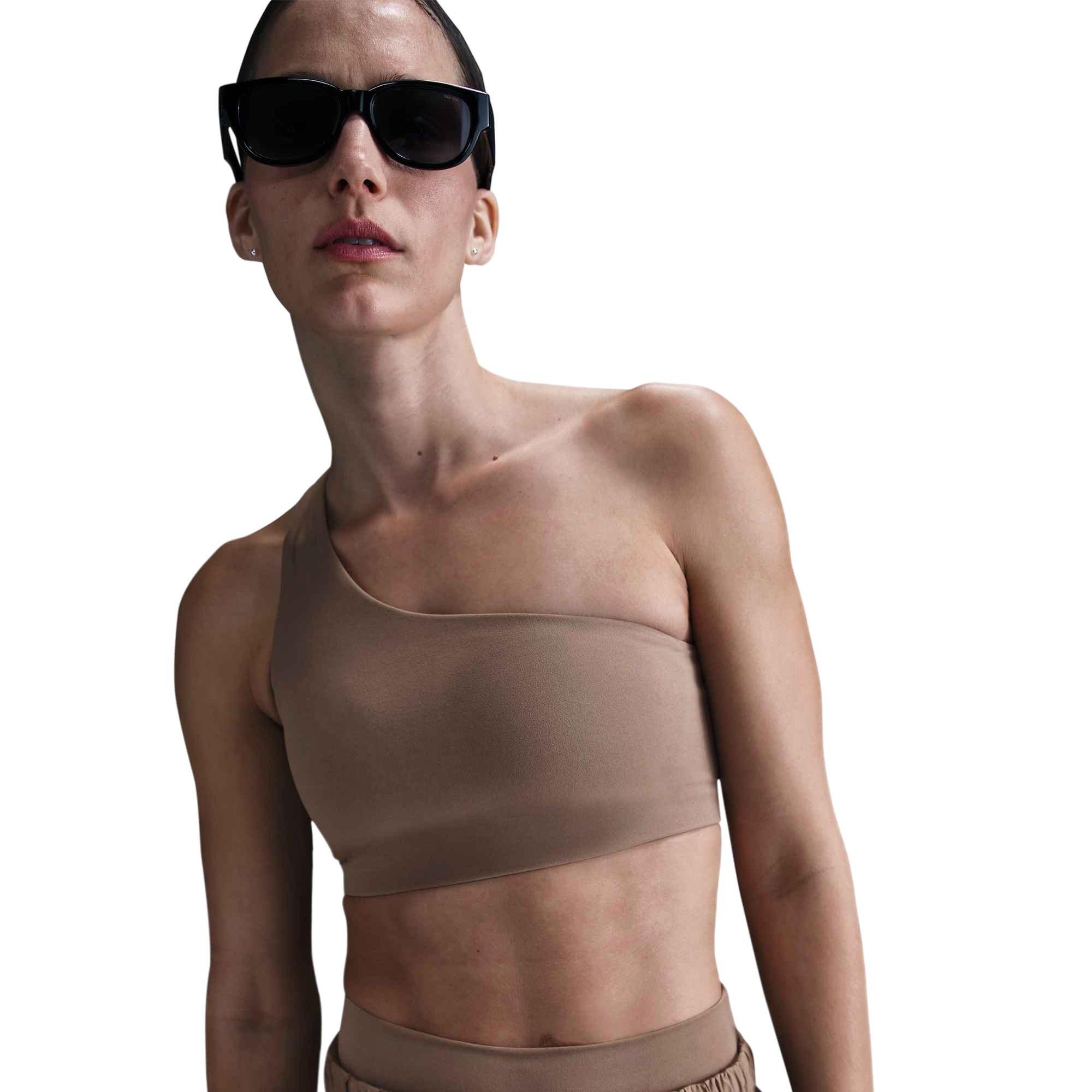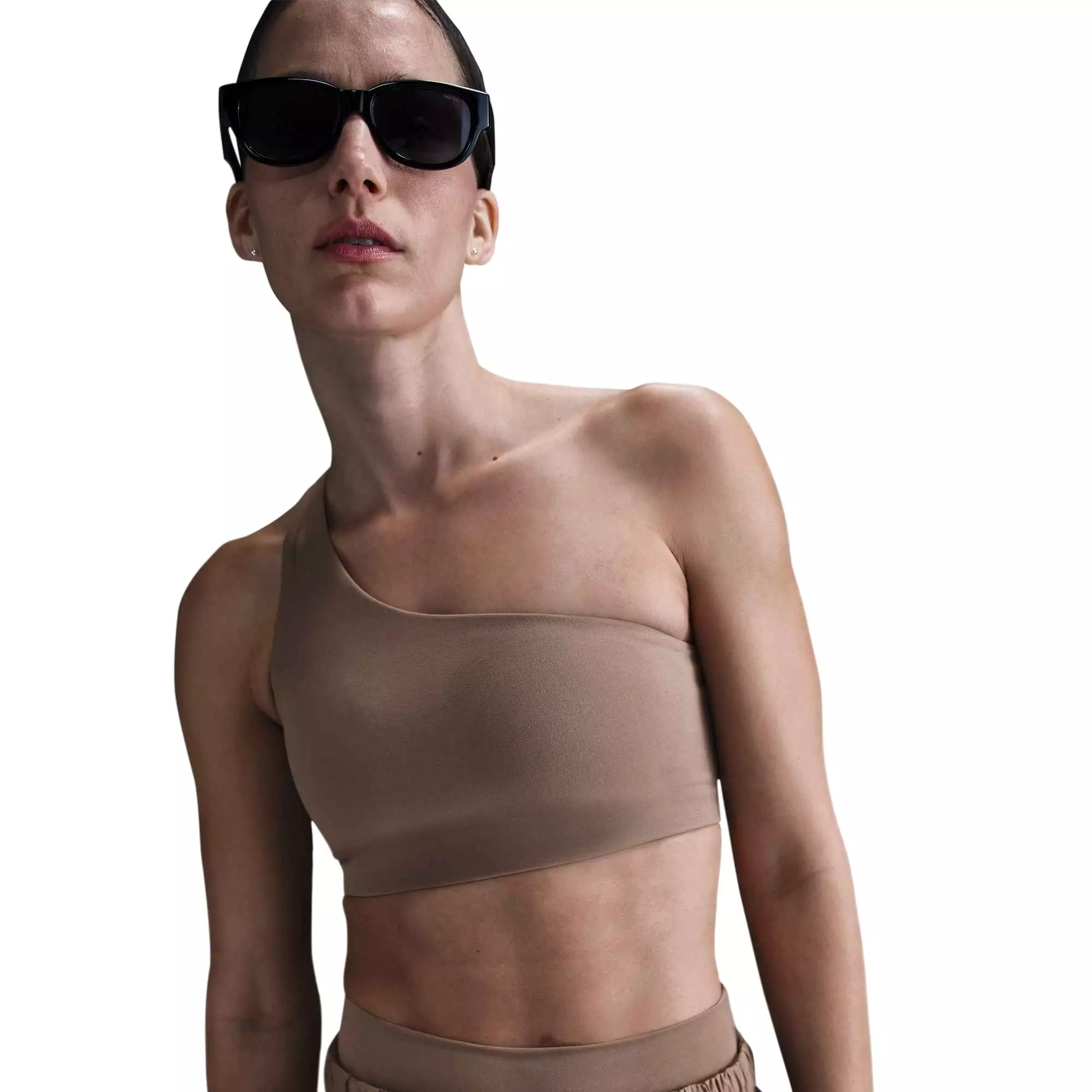 Balance your day in comfort in this brown Nike Women's Zenvy Asymmetrical Light-Support Padded Sports Bra. Its lightweight InfinaSoft fabric gives you softness that you can feel with every bend, stretch and shift.Features