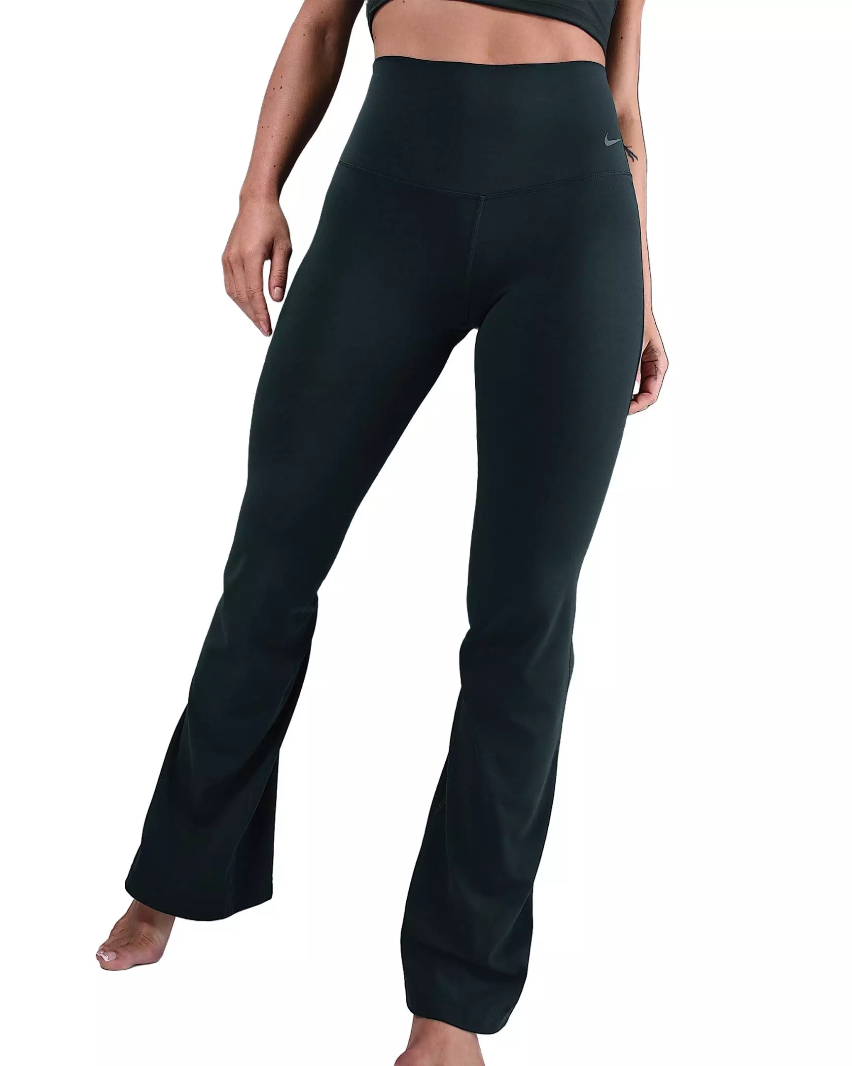 Holding your poses or taking a walk in the park, you can move freely in our unbelievably soft Nike Women's Zenvy High-Waisted Flare Leggings - Seaweed Green. Their InfinaSoft fabric is lightweight—but still squat-proof!—with softness that you can feel with every bend, stretch and shift. Fewer pockets give you a streamlined look, but the drop-in pocket at the center back is still big enough to hold your phone.Features