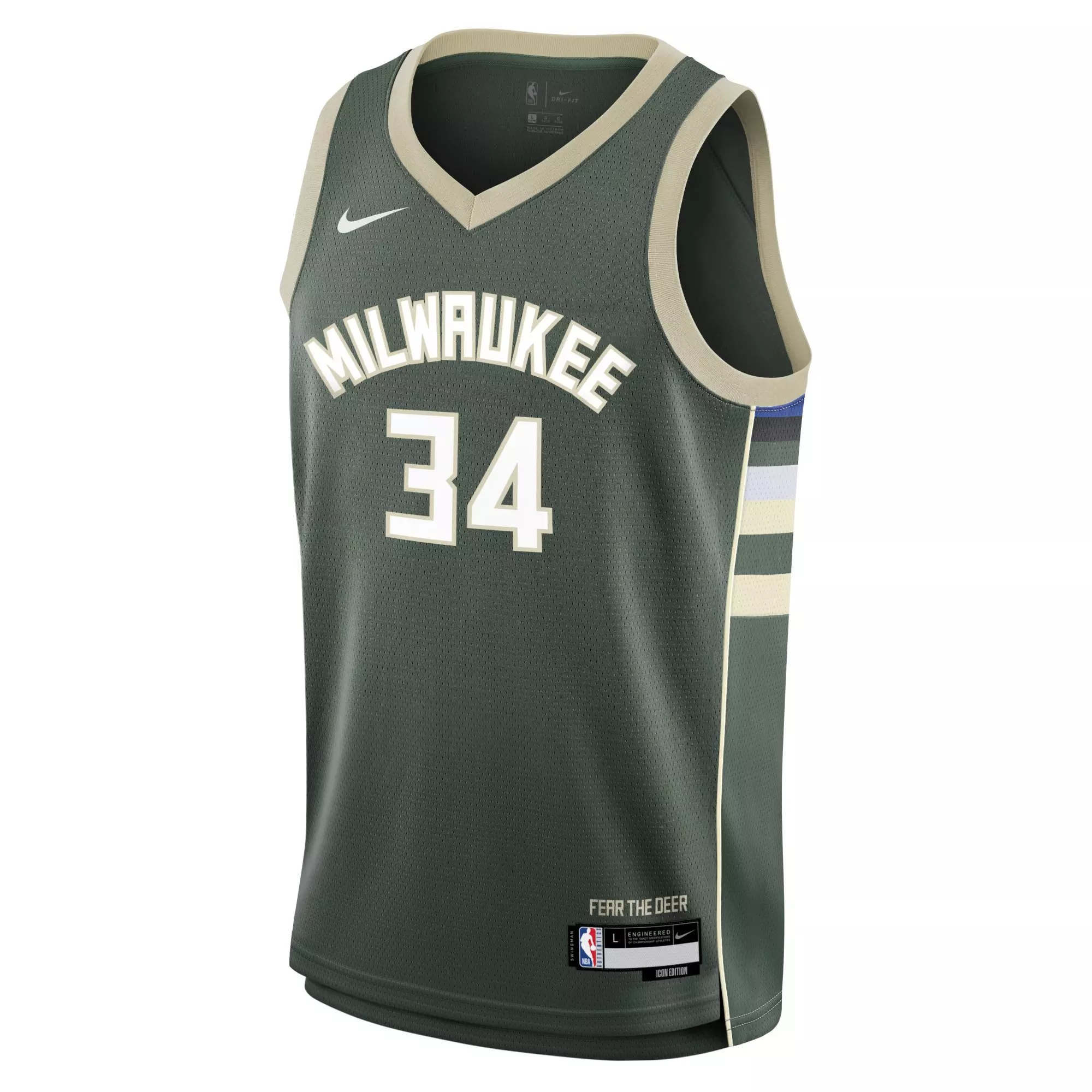 Showcase your distinct team identity with the Nike Youth Milwaukee Bucks Giannis Antetokounmpo Swingman Jersey-Green. This jersey features an innovative design inspired by the team's on-court look, highlighted by green trim and authentic Milwaukee Bucks graphics.