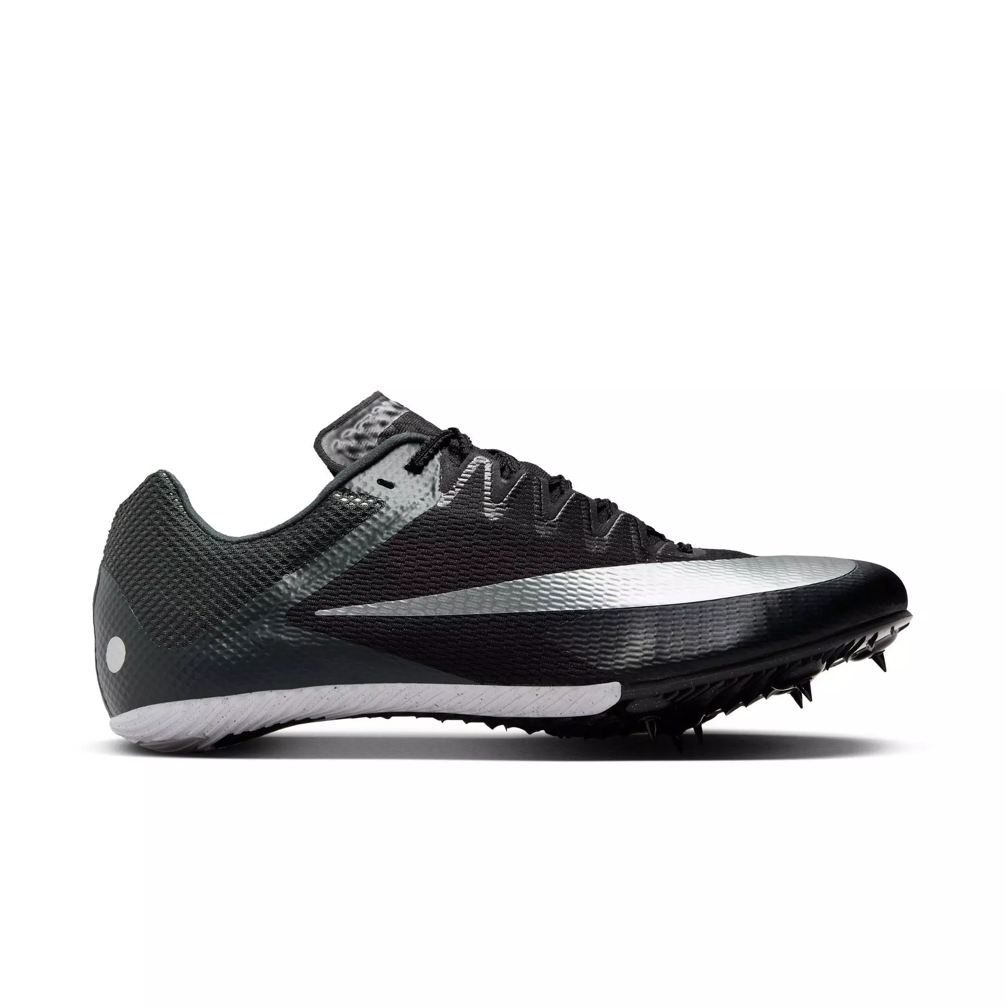 Race out of the starting blocks and finish with a flurry in a Nike Zoom Rival Sprint "Black/Metallic Silver" Men's Track Spike designed with speed in mind. Its robust, reinforced yet lightweight upper provides the key containment necessary to attack the turns and straightaways around the oval. Feel the power and drive of the forefoot plate as you get up on your toes and hightail it toward the tape.