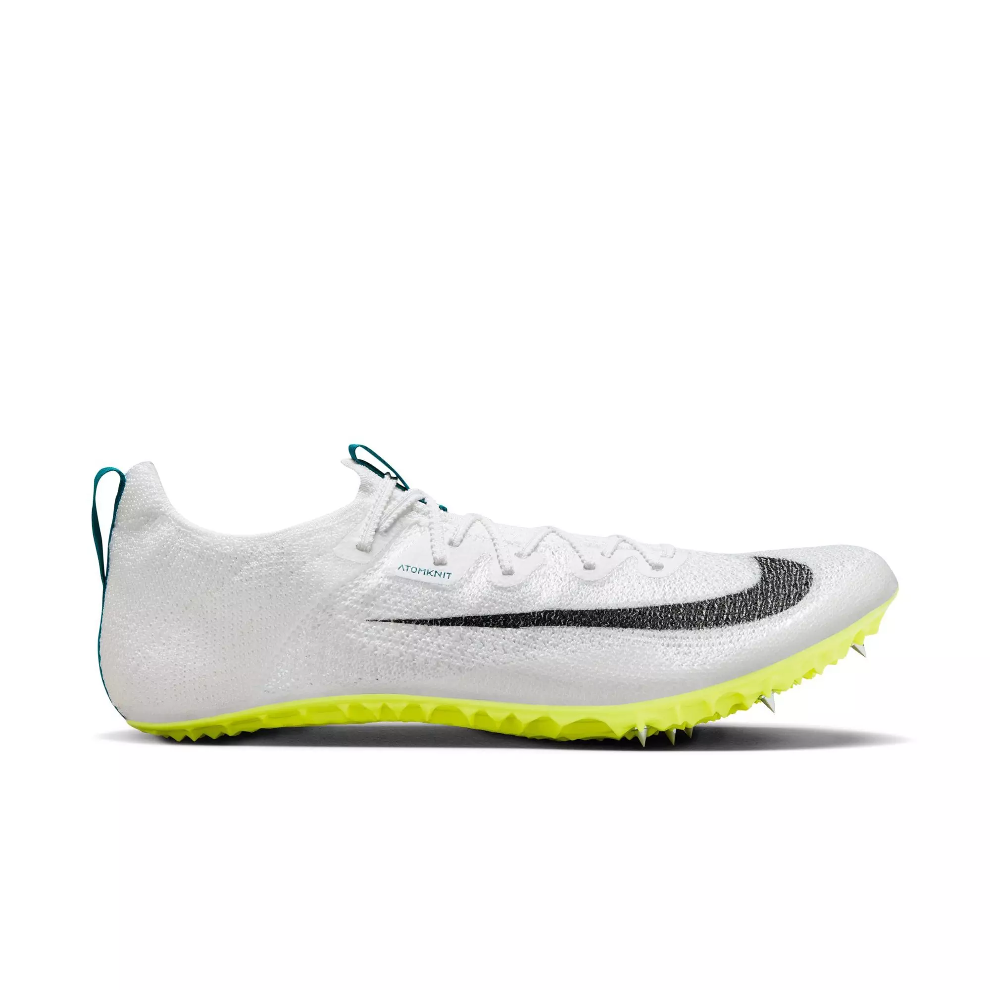 The Nike Zoom Superfly Elite 2 "White/Electric Algae/Bright Spruce" Unisex Track Spike weighs almost nothing and features a breathable mesh upper. Its design suits 100m to 400m sprints, delivering exceptional support and response.