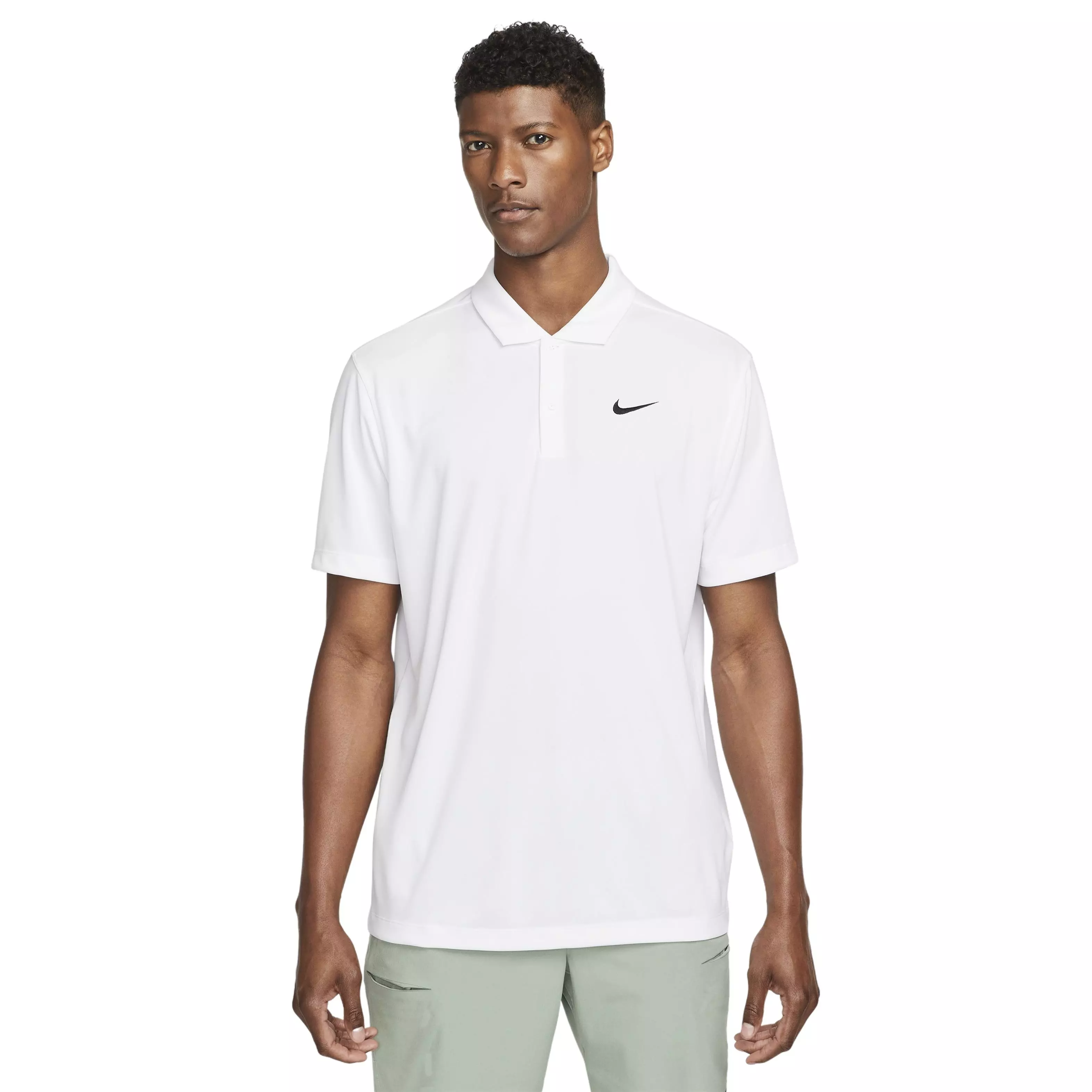 Own the court in the NikeCourt Men's Dri-FIT Solid Tennis Polo, built for cool, composed play. Soft knit fabric made from 100% recycled polyester fibers moves smoothly against skin while Nike Dri-FIT technology wicks sweat to help keep you dry from warmups to match point.