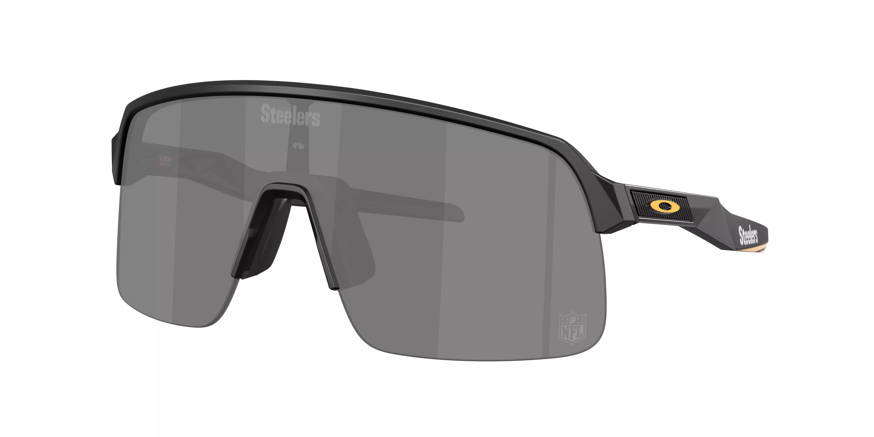See every touchdown in style and represent your team in this special-edition NFL Sutro Lite, the Oakley Pittsburg Steelers 2025 Sutro Lite Prizm Black Sunglasses – Matte Black, featuring Prizm™ Lens Technology, team colors and official team logos.The Sutro family expands with a semi-rimless version of the popular style for greater field of view. Inspired by the daily life of urban cyclists, the high-wrap shield creates a bold, versatile look, protects from the elements and enhances vision with Prizm™ Lens Technology, while inspiring athletes to move confidently and seamlessly through their day.
