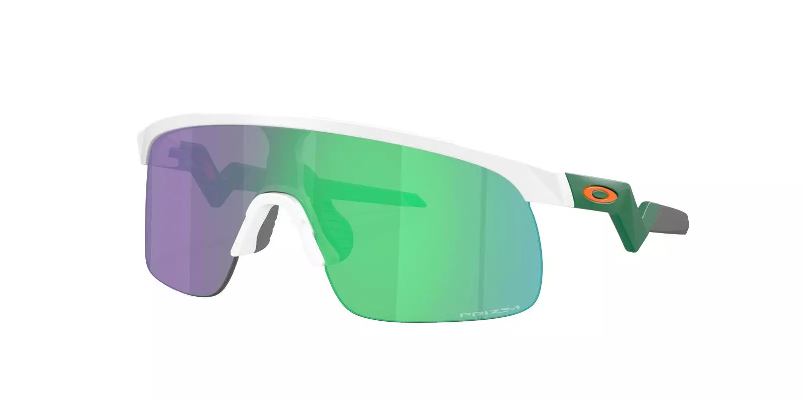 Oakley® releases Resistor, its first sunglass built entirely from the ground up with a focus on youth. The Oakley Youth Resistor Prizm Jade Sunglasses – Matte White take style and function cues from popular adult styles like Sutro, while offering a design that accommodates the next generation of athletes. An O Matter™ frame balances flex and impact protection, while a high-wrap shield lens mimics other classic styles from Oakley. Unobtainium® nosepads help provide a no-slip fit and Prizm™ Lens Technology enhances color and contrast across a variety of environments and activities. Resistor is available in a variety of colorways, including a Patrick Mahomes Signature Series version featuring a gold frame with Prizm 24K lenses. Features