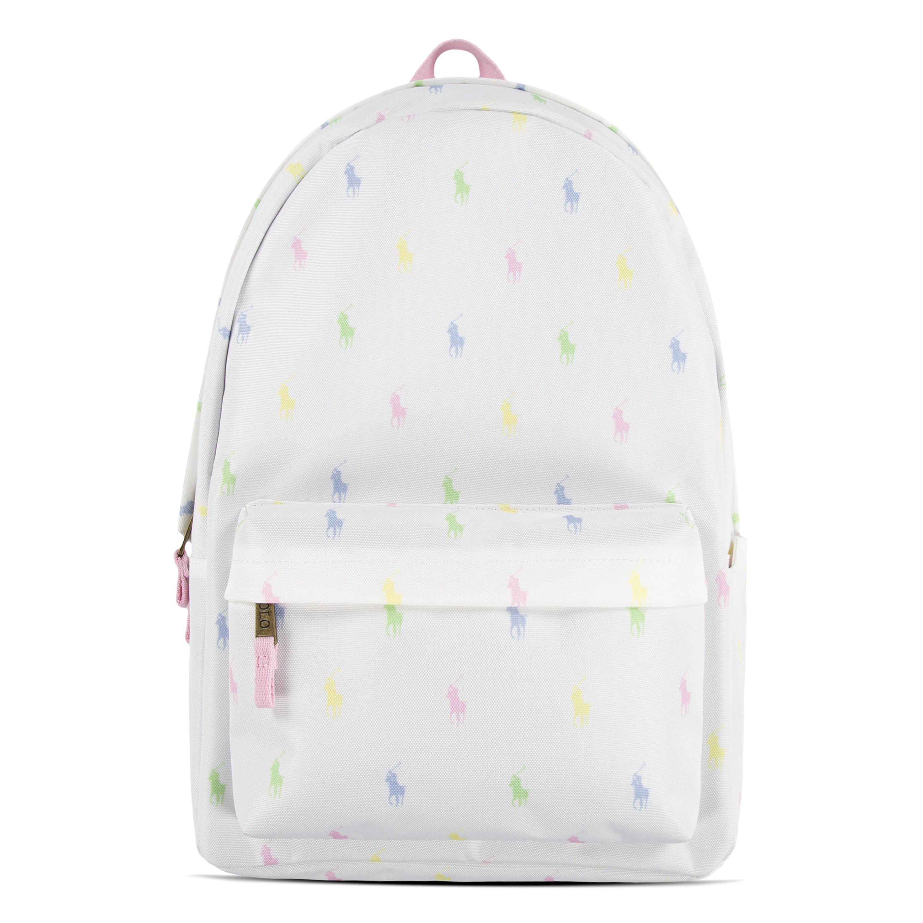 This white Polo Ralph Lauren Allover Logo Printed Large Backpack is stylish enough to be carried around school or around town.Features