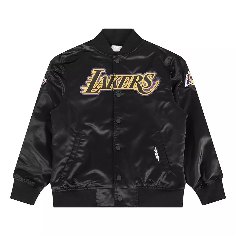 The Pro Standard Big Boy's Los Angeles Lakers Classic Satin Jacket-Black/Yellow delivers a glossy finish accented by contrasting ribbed details. This jacket keeps out the chill during game nights or casual outings.
