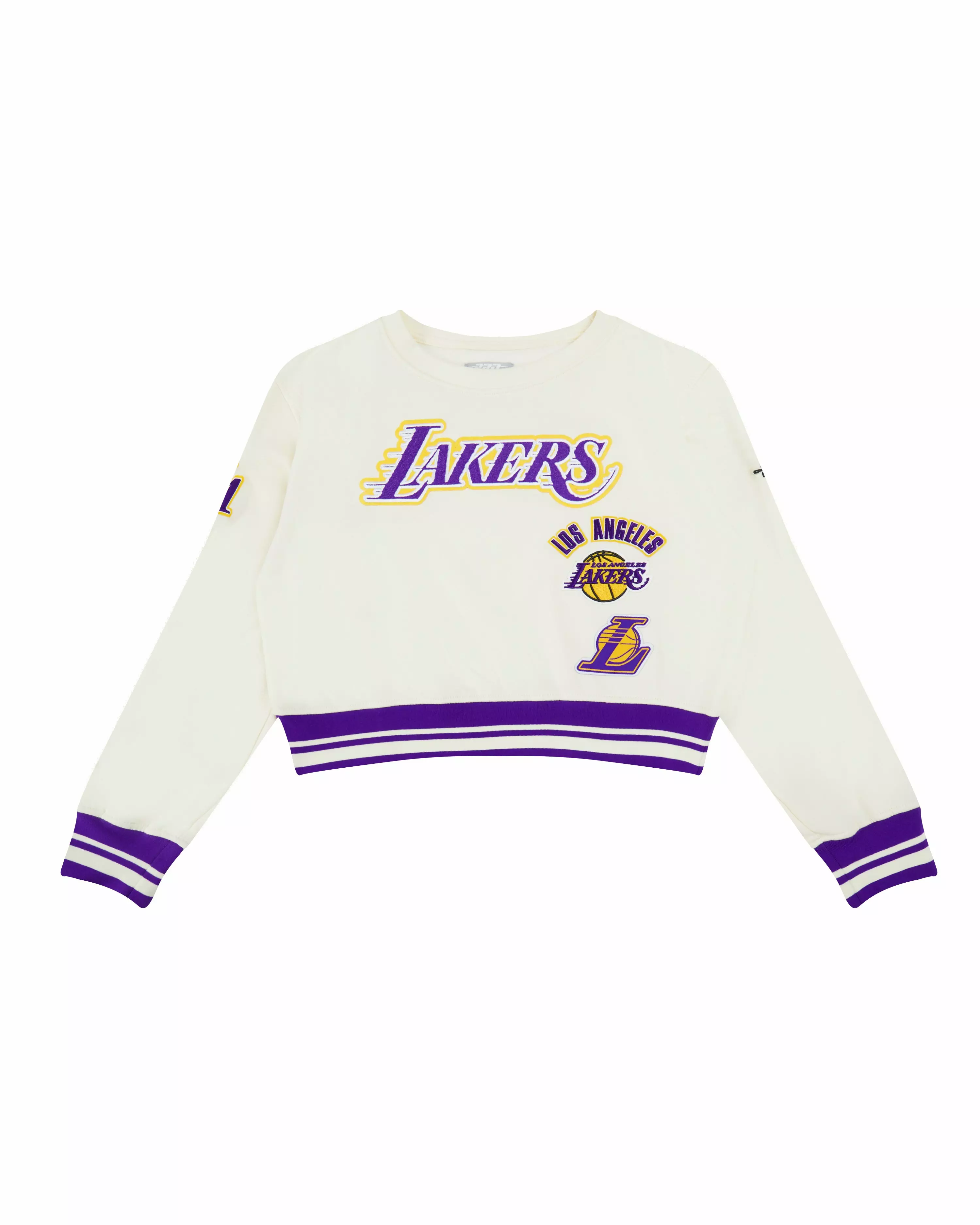 • Pro Standard Big Girls' NBA Los Angeles Lakers Retro Classic Rib Fleece Crewneck - White/Purple - WHITE/PURPLE