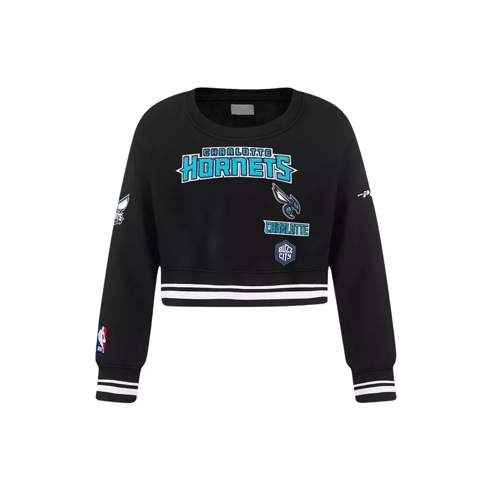 Pro Standard Little Girls' NBA Charlotte Hornets Retro Classic Rib Fleece Crewneck - Black