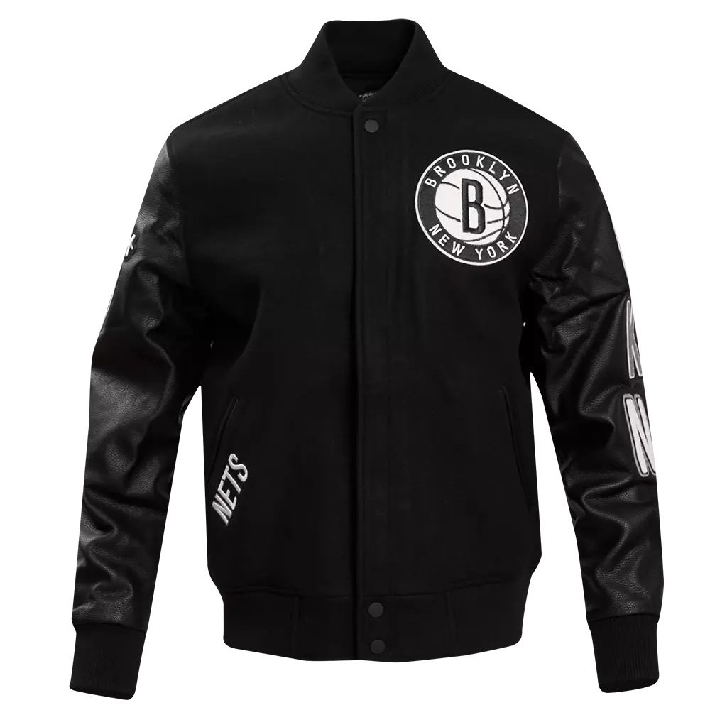 Pro Standard Men's Brooklyn Nets Classic Wool Varsity Jacket -BlackThis black Pro Standard Men's Brooklyn Nets Classic Wool Varsity Jacket will make you stand out from the crowd. The midweight jacket will keep you comfortable when the temperature drops thanks to the jacket’s stand -up collar quilted lining and full-zip front. Various pockets offer storage for all essentials. This stylish jacket features faux leather sleeves and base felt chenille team logo patches, and 3D embroidery, making it the perfect choice for any fashion-savvy individual.