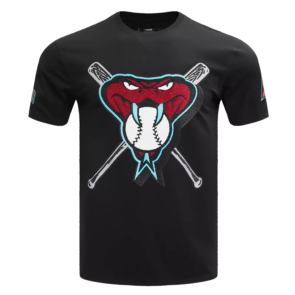 This black Pro Standard Men's MLB Arizona Diamondbacks Mashup Top is made from single jersey cotton and features base twill 3D satin Stitch embroidery and premium team logo patches. The combination of these elements creates a unique and eye-catching shirt that is sure to turn heads. Whether you're dressing up for a night out or just looking for a cool new casual shirt, our tee is the perfect choice.