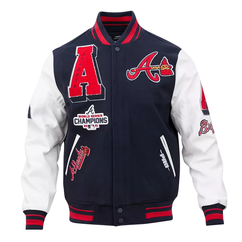 Pro Standard Men's MLB Atlanta Braves Mashup Rib Wool Varsity Jacket -Navy/Red