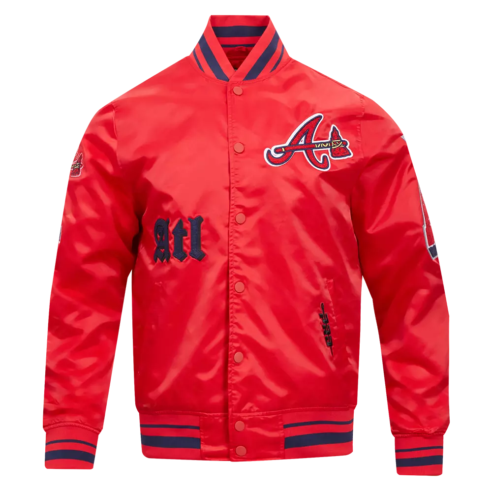 Pro Standard Men's MLB Atlanta Braves Old English Rib Satin Varsity Jacket -Red/Navy