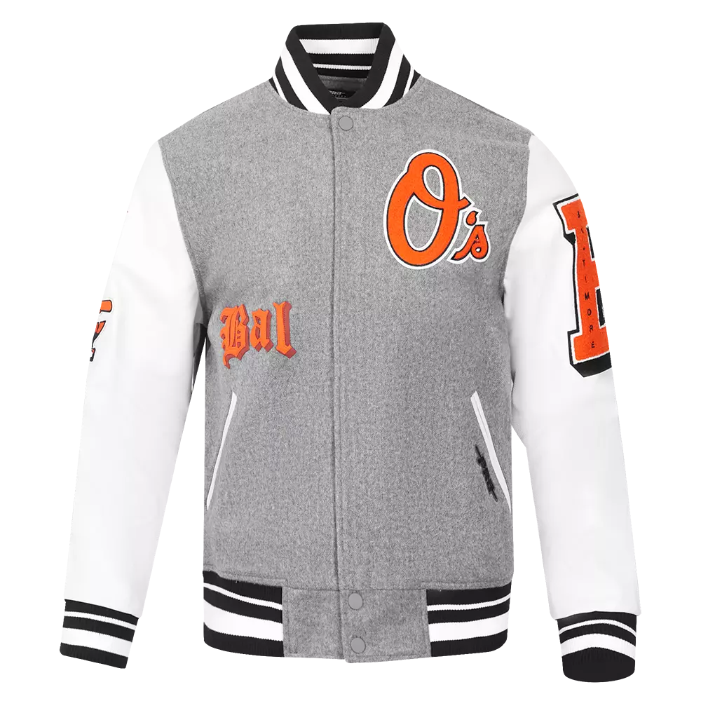 • Pro Standard Men's MLB Baltimore Orioles Classic Old English Rib Wool Varsity Jacket - Grey/White - GREY/WHITE