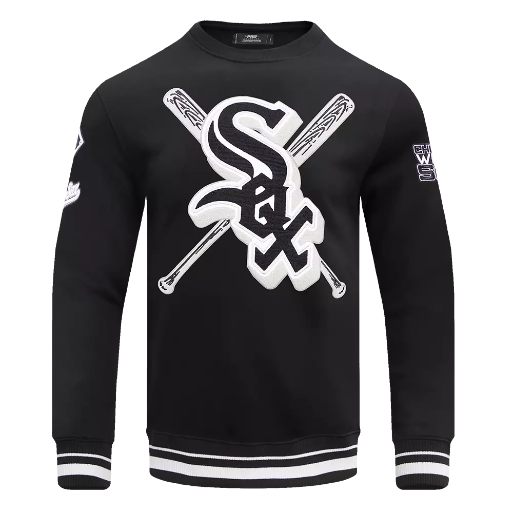 Better together. If you can’t decide which team logo is the vibe of the day, then don’t. The Mashup Capsule does the forbidden by combining team artwork from different eras into one piece. Remix it, and press play.This black & grey Pro Standard Men's MLB Chicago White Sox Mashup Rib Crewneck sweatshirt is made from 100% brushed back cotton fleece for maximum comfort.