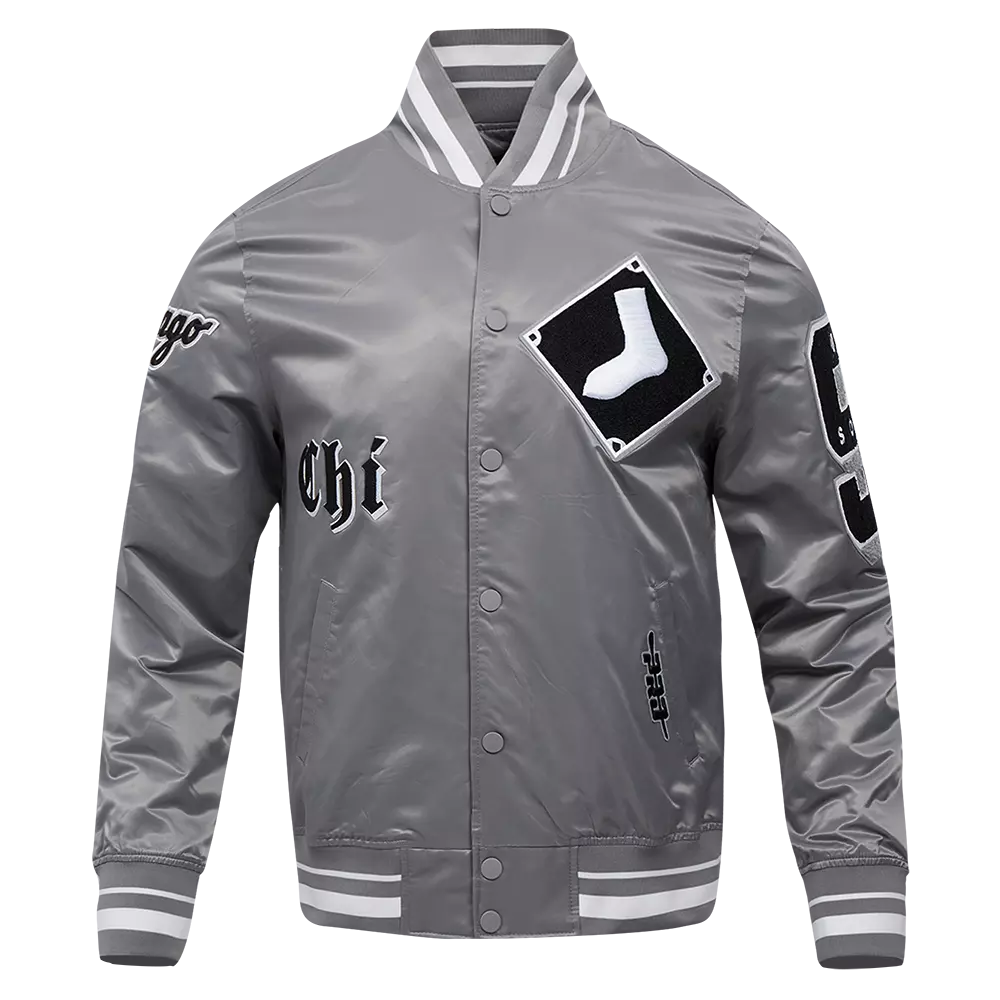 Pro Standard Men's MLB Chicago White Sox Old English Rib Satin Varsity Jacket - Grey