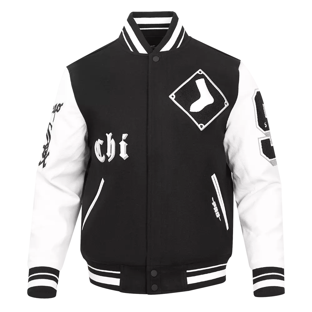 • Pro Standard Men's MLB Chicago White Sox Old English Rib Wool Varsity Jacket - Black/White - BLACK/WHITE