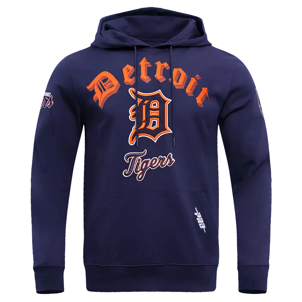 Athletic competition dates back. The Old English Capsule features the Renaissance-esque typeface alongside team emblems. Display your loyalty, feel like fan royalty, and conquer the day's look. This navy Pro Standard Men's MLB Detroit Tigers Old English PO Hoodie is our most comfortable cotton double knit hoodie that features elevated team logo patches. Pure sophistication!Features