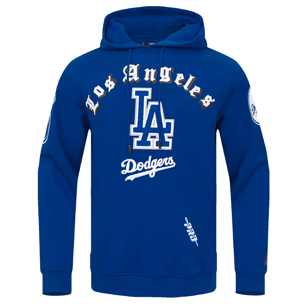 Athletic competition dates back. The Old English Capsule features the Renaissance-esque typeface alongside team emblems. Display your loyalty, feel like fan royalty, and conquer the day's look. This blue Pro Standard Men's MLB Los Angeles Dodgers Old English PO Hoodie is our most comfortable cotton double knit hoodie that features elevated team logo patches. Pure sophistication!Features