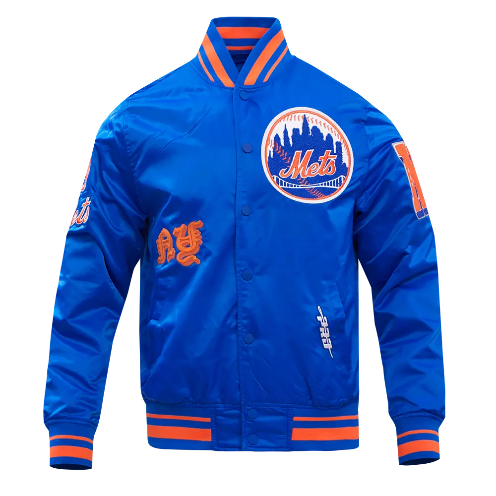 Pro Standard Men's MLB New York Mets Old English Rib Satin Varsity Jacket -Royal/Orange