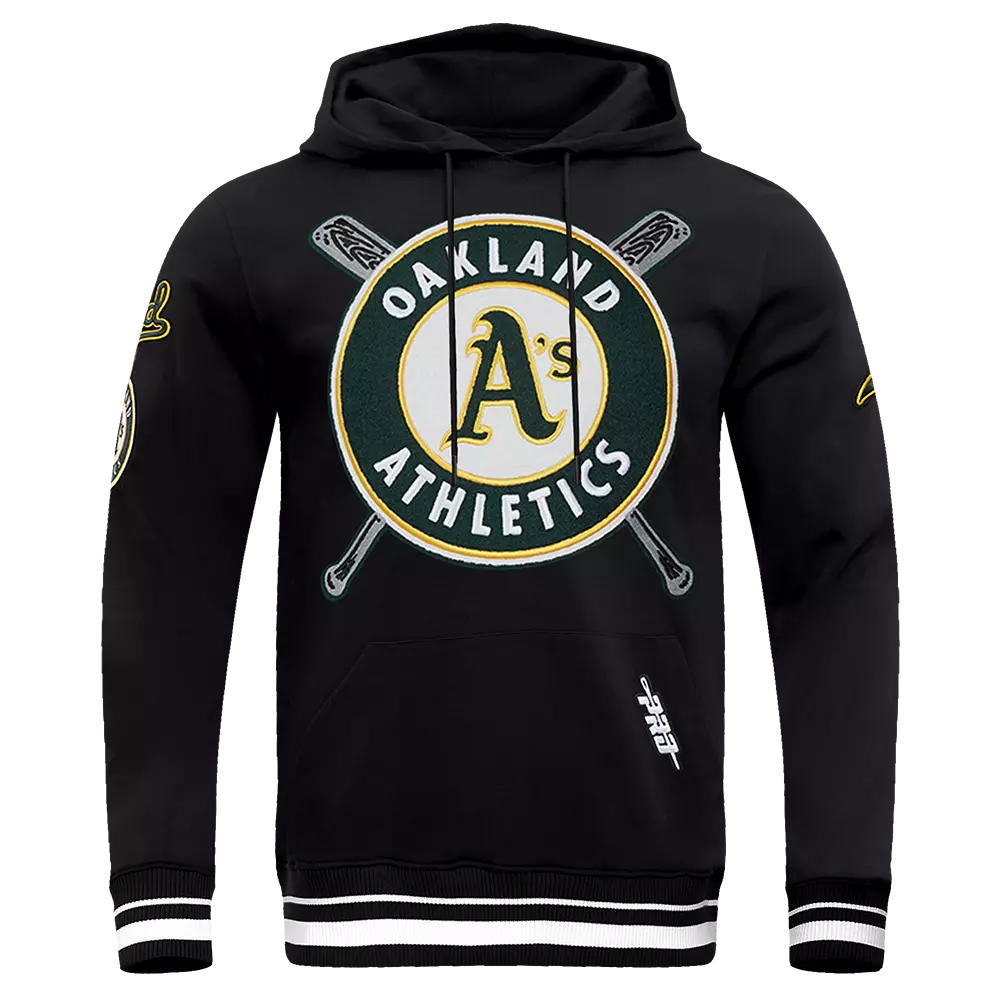 This black Pro Standard Men's MLB Oakland Athletics Mashup Rib PO Hoodie is our most comfortable cotton double knit hoodie that features elevated team logo patches. Pure sophistication!