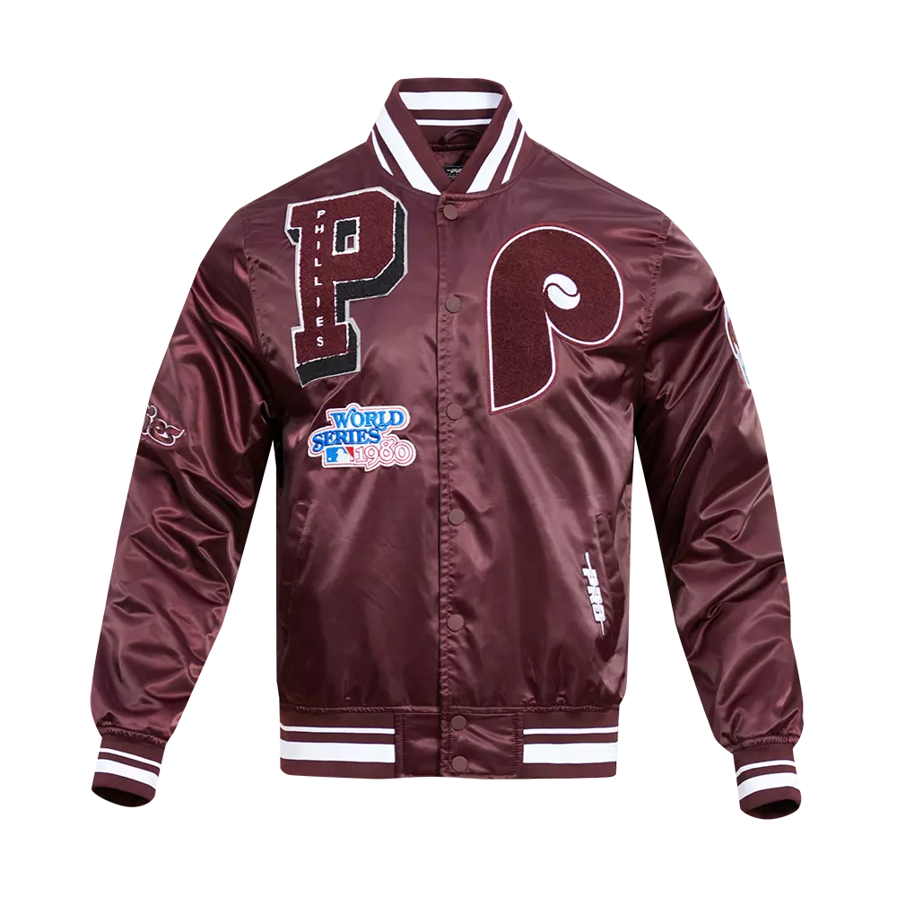 • Pro Standard Men's MLB Philadelphia Phillies Retro Mashup Rib Satin Jacket - Wine - WINE