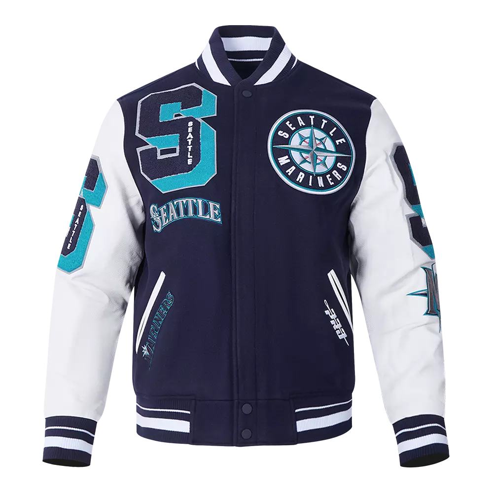 Pro Standard Men's MLB Seattle Mariners Mashup Rib Wool Varsity Jacket -Navy/White