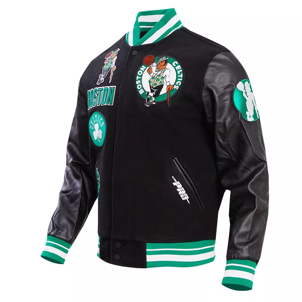 Pro Standard Men's NBA Boston Celtics Retro Classic Rib Wool Varsity Jacket - Black/Kelly Green